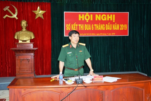 (QK7 Online) - Ngày 5 tháng 7, Cụm thi đua 2 khối Ban Cục Chính trị tổ chức hội nghị sơ kết phong trào thi đua quyết thắng 6 tháng đầu năm năm 2019. Đại tá Nguyễn Văn Hiệu, Phó Chủ Chính trị Quân khu dự và phát biểu chỉ đạo.