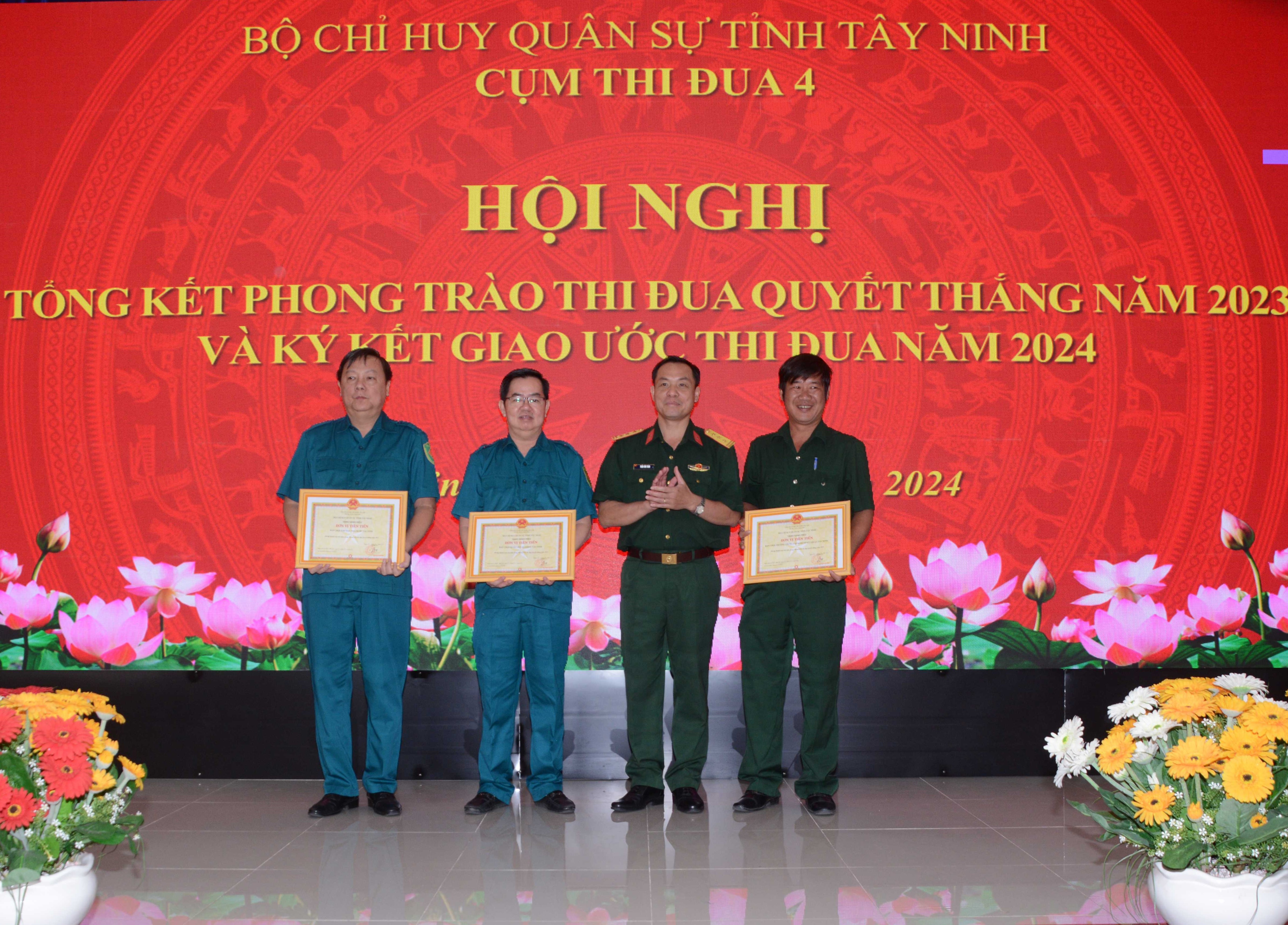 Bộ CHQS tỉnh tặng danh hiệu “Đơn vị tiên tiến” cho Ban CHQS Kho bạc Nhà nước Tây Ninh, Ban CHQS Bệnh viện Đa khoa Tây Ninh, Ban CHQS Trường trung cấp Kinh tế Kỹ thuật Tây Ninh và 3 cá nhân có thành tích tiêu biểu trong thực hiện phong trào thi đua quyết thắng năm 2023.