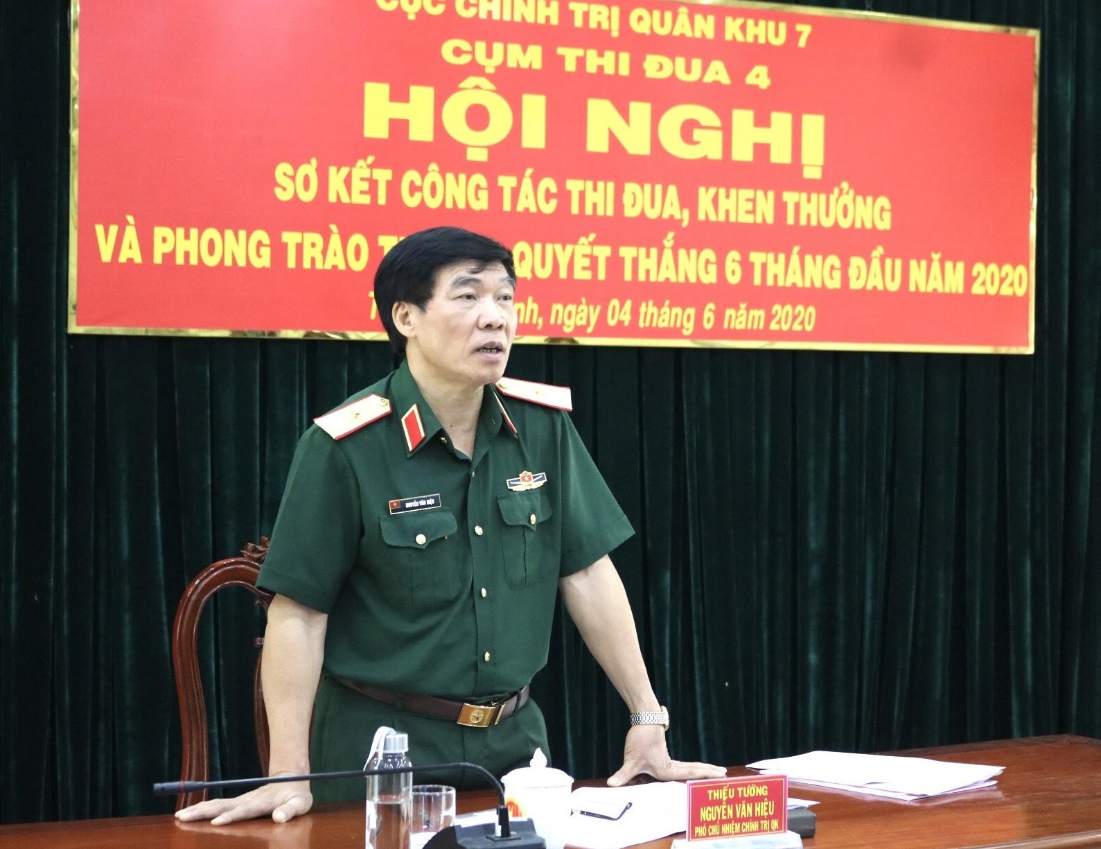 Phát biểu chỉ đạo tại hội nghị, Thiếu tướng Nguyễn Văn Hiệu, Phó Chủ nhiệm Chính trị Quân khu biểu dương những kết quả đạt được của Cụm thi đua trong 6 tháng qua. Đồng thời yêu cầu trong thời gian tới, các đơn vị tiếp tục phát động các phong trào thi đua đúng hướng, đúng nội dung; triển khai thực hiện nhiều mô hình, điển hình tiên tiến đi vào thực chất, hiệu quả; thường xuyên tổ chức kiểm tra, đánh giá kết quả thực hiện phong trào thi đua, kịp thời động viên, khen thưởng đúng người, đúng việc.