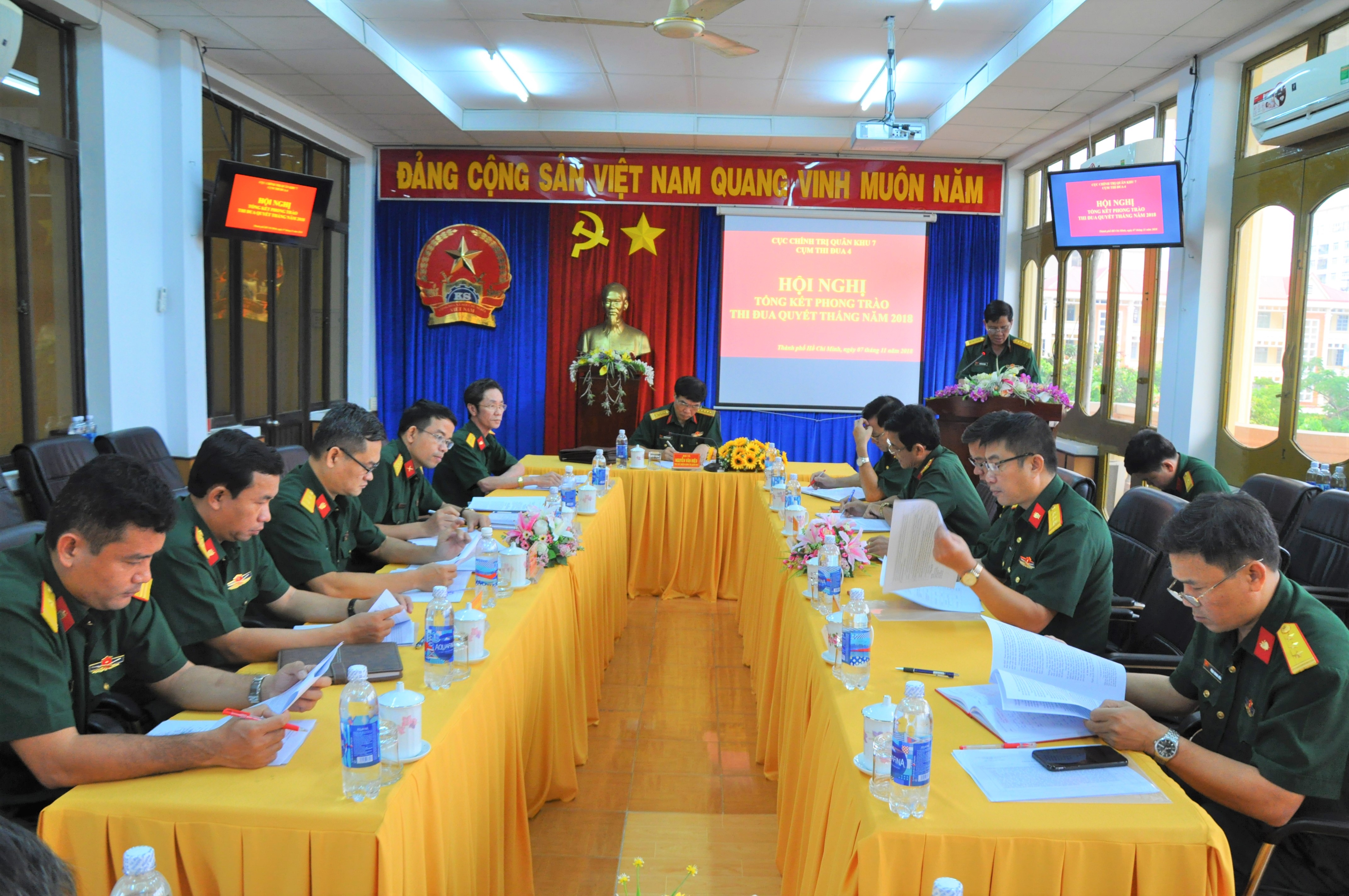 Phát biểu tại hội nghị, Đại tá Nguyễn Văn Hiệu, Phó Chủ nhiệm Chính trị Quân khu 7 biểu dương những kết quả đạt được của các đơn vị trong Cụm thi đua 4 trong việc thực hiện phong trào thi đua quyết thắng năm 2018. Đồng chí Phó Chủ nhiệm Chính trị Quân khu đề nghị các đơn vị cần tập trung thực hiện tốt thi đua có mục tiêu, chỉ tiêu, bám sát nhiệm vụ chính trị của đơn vị; xây dựng đảng bộ trong sạch vững mạnh, bám sát các phong trào thi đua của cấp trên và triển khai thực hiện nghiêm túc đạt hiệu quả. Tổ chức chặt chẽ các đợt thi đua đột kích nhằm khắc phục khâu yếu, mặt yếu. Đồng thời coi trọng việc tổ chức các hoạt động thi đua, đẩy mạnh việc nhân rộng các mô hình, điển hình tiên tiến; phát huy sức sáng tạo trong tổ chức thực hiện nhiệm vụ, góp phần hoàn thành tốt nhiệm vụ chính trị được giao.
