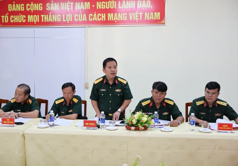 Đại tá Trần Văn Long, Phó Chính ủy Cục Hậu cần – Kỹ thuật Quân khu 7 phát biểu chỉ đạo tại hội nghị.