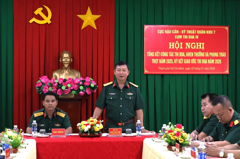 Phát biểu tại hội nghị, Đại tá Trần Văn Long biểu dương những kết quả Cụm thi đua 4 đã đạt được trong năm 2025. Đồng chí Phó Chính ủy Cục Hậu cần – Kỹ thuật Quân khu yêu cầu các cơ quan, đơn vị trong Cụm tiếp tục quán triệt, triển khai đầy đủ, hiệu quả Phong trào Thi đua Quyết thắng năm 2026 đến toàn thể cán bộ, chiến sĩ; chú trọng đổi mới nội dung, hình thức tuyên truyền, phát huy tính sáng tạo, ứng dụng mạnh mẽ công nghệ số và chuyển đổi số, từng bước nâng cao chất lượng chuyên môn, kỹ năng số, đáp ứng yêu cầu nhiệm vụ trong tình hình mới. Đồng thời, duy trì và thực hiện có chiều sâu, nền nếp, hiệu quả các mô hình, cách làm hay; tổ chức phong trào thi đua chặt chẽ, thực chất, hiệu quả hơn năm 2025, phấn đấu có nhiều tập thể, cá nhân tiêu biểu được khen thưởng, góp phần hoàn thành thắng lợi mọi nhiệm vụ được giao.