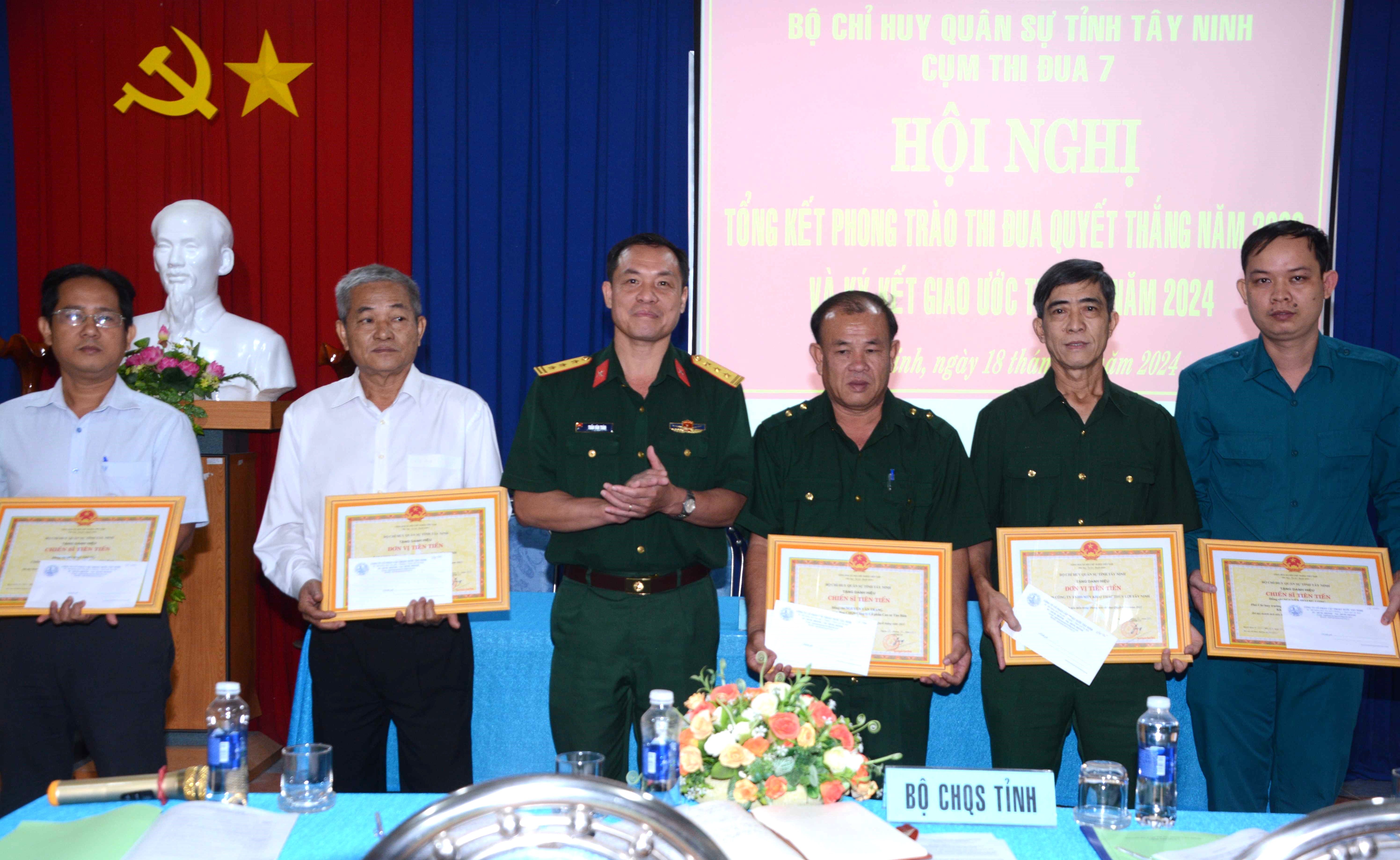 Tổng kết phong trào thi đua năm 2023, Bộ CHQS tỉnh khen thưởng Ban CHQS Công ty cổ phần Cao su Tân Biên, Ban CHQS Công ty TNHH MTV khai thác thủy lợi Tây Ninh, Ban CHQS Công ty cổ phần Cao su Tây Ninh và 3 cá nhân.