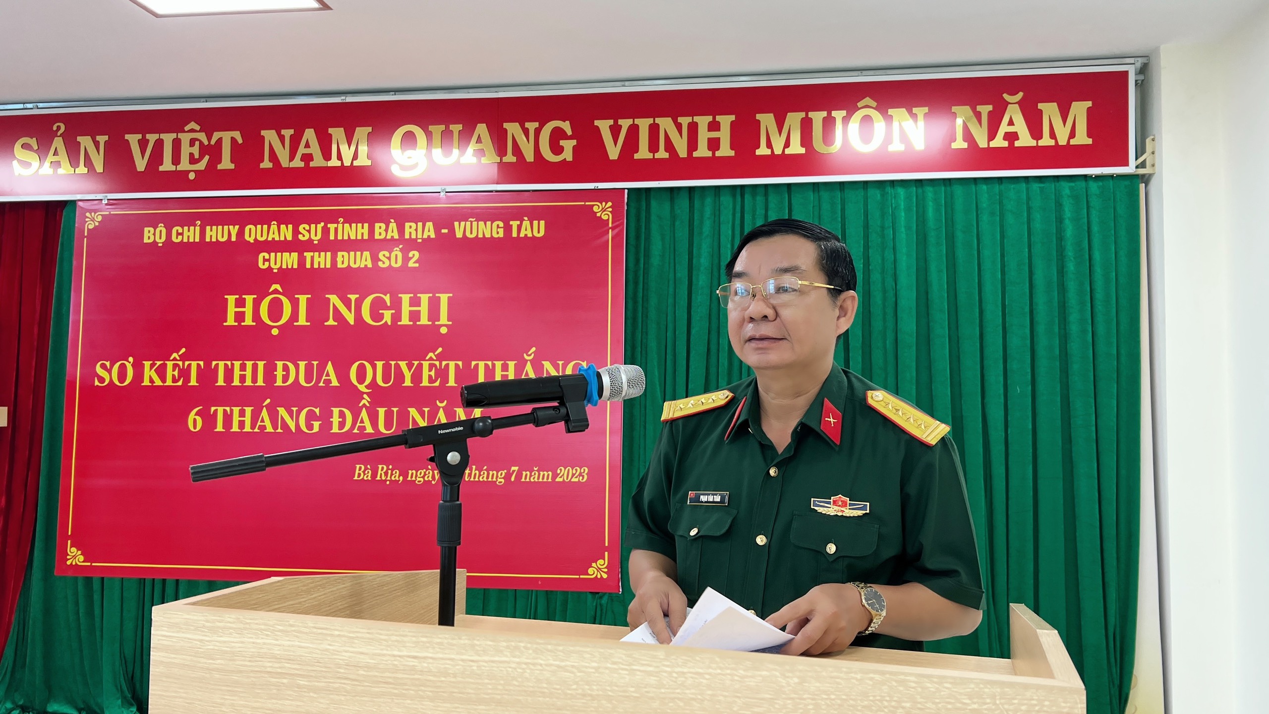 (QK7 Online) - Ngày 28-7, Cụm thi đua số 2 Ban CHQS các cơ quan, tổ chức cấp tỉnh thuộc Bộ CHQS tỉnh Bà Rịa - Vũng Tàu tổ chức hội nghị sơ kết Phong trào Thi đua Quyết thắng 6 tháng đầu năm 2023.