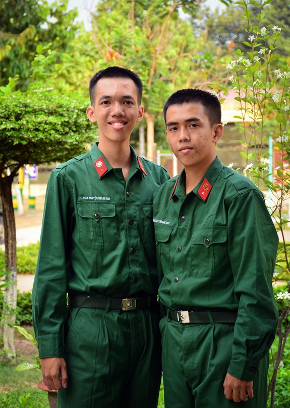 Hoàng Duy chia sẻ: “Anh em chúng tôi mong ước trở thành quân nhân trong Quân đội nhân dân Việt Nam từ lâu, xuất phát từ hình ảnh cao đẹp, thân thương của người cha. Cha đã tham gia quân đội, cống hiến tuổi thanh xuân từ kháng chiến chống Mỹ, cứu nước đến làm nghĩa vụ quốc tế tại nước bạn Campuchia. Trở về với đời thường, cha chúng tôi là thương binh, cựu chiến binh gương mẫu, được địa phương tín nhiệm bầu làm bí thư chi bộ khu phố. Trong đợt tuyển quân năm 2021, anh em chúng tôi cùng tình nguyện nhập ngũ. Gia đình rất ủng hộ và luôn động viên chúng tôi phấn đấu hoàn thành tốt nhiệm vụ”. Còn Hoàng Quý bộc bạch: “Được vào quân đội cùng thời điểm với anh trai là niềm vui, tự hào. Bên cạnh thủ trưởng cấp trên, đồng chí, đồng đội, lại có thêm người anh ruột là rất trân quý để tôi càng an tâm thực hiện nhiệm vụ”.