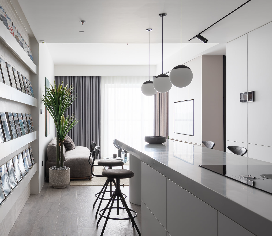 Với một người yêu sự gọn gàng nhưng bận rộn, giải pháp lưu trữ được trải khắp căn hộ. Hệ tủ không tay nắm được thiết kế như những bức tường phẳng, xóa nhòa cảm giác nặng nề của nội thất. Đây chính là cách căn hộ tự dọn dẹp chính mình, giúp không gian luôn trong trạng thái ngăn nắp.