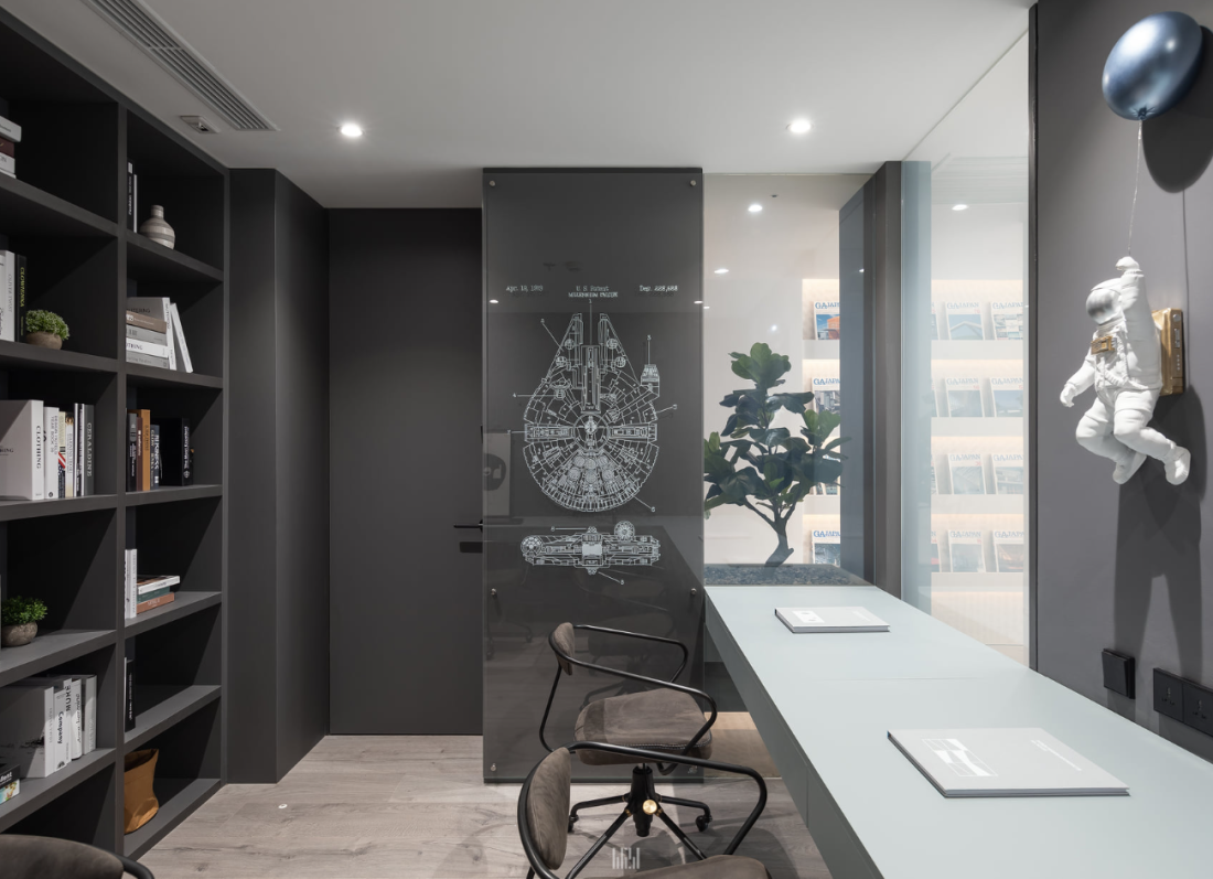 Nằm ngay vị trí đón đầu cửa ra vào, phòng làm việc là khu vực quan trọng nhất. Một chiếc bàn kích thước lớn được ưu tiên bố trí, biến nơi đây thành một hub công nghệ thực thụ ngay tại nhà.