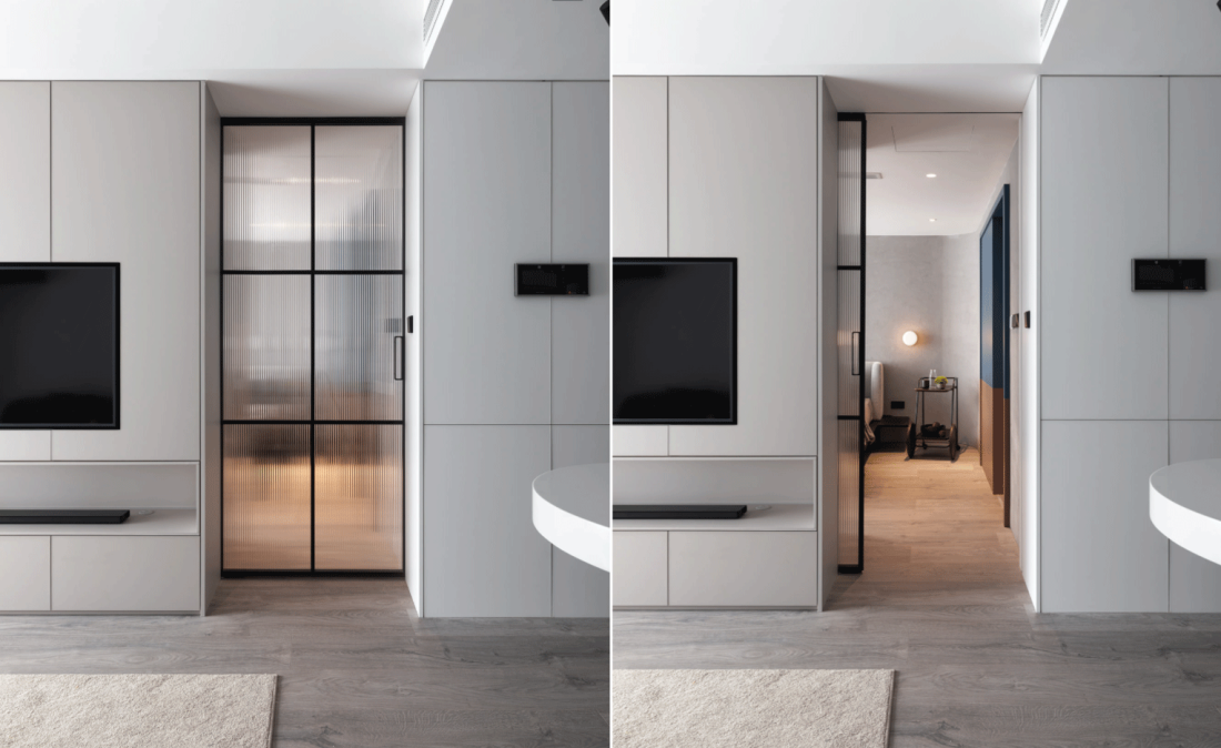 Để giải quyết mâu thuẫn giữa tính riêng tư và sự thông thoáng, kiến trúc sư đã sử dụng vách kính điện tử thông minh. Chỉ bằng một nút bấm, hệ kính có thể chuyển đổi linh hoạt từ trong suốt sang mờ đục, cho phép gia chủ thay đổi trạng thái không gian tùy theo nhu cầu làm việc cá nhân hay đón tiếp cộng sự.