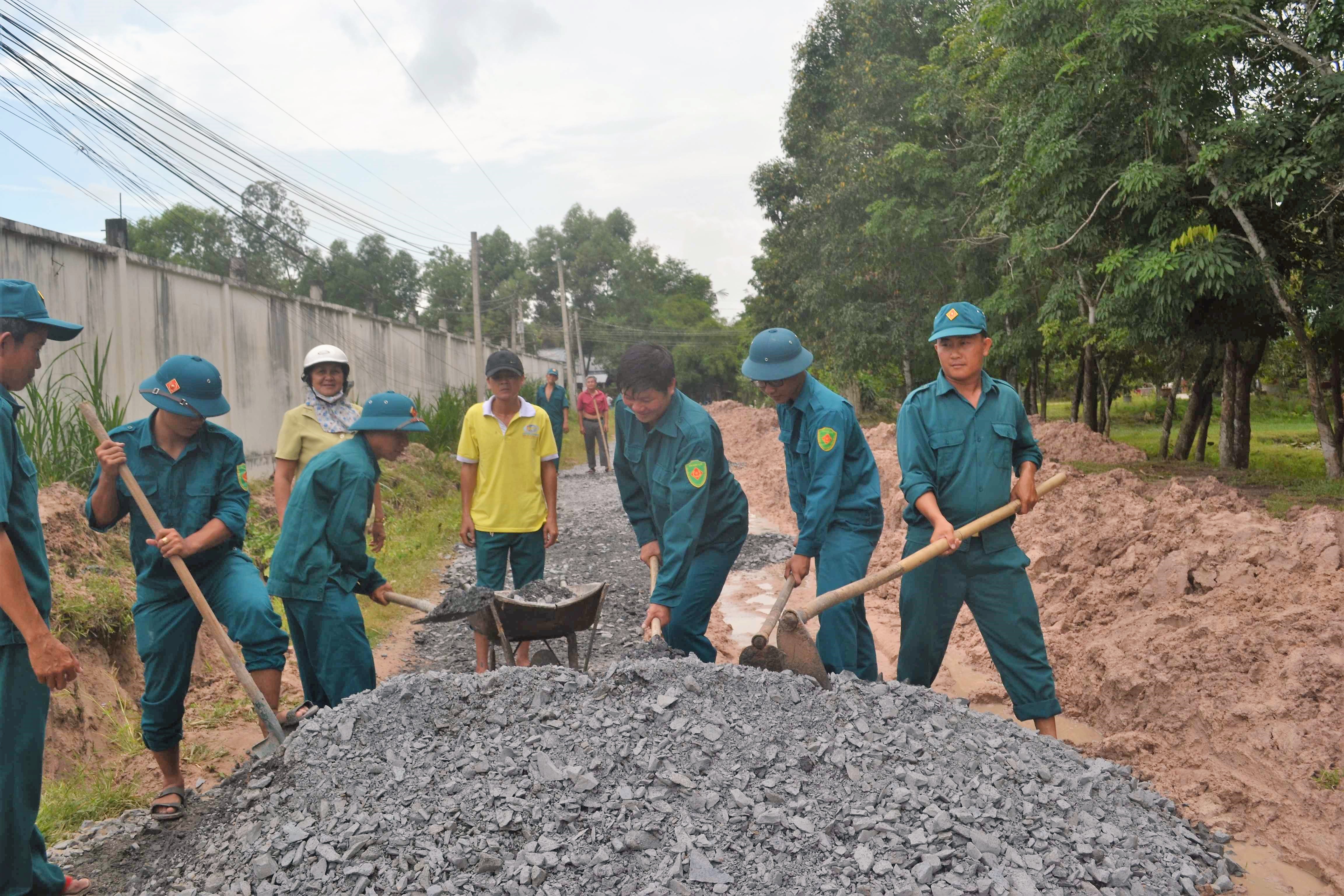 Trời đã về trưa, nhưng cán bộ, chiến sĩ dân quân cơ động trên địa bàn huyện vẫn cùng cán bộ, nhân dân xã An Bình ban các đống đá san phẳng mặt đường, hoàn thành hơn 400m tại ấp Thanh An. Dù thấm mệt, nhưng ai cũng vui vì đã làm được những công việc ý nghĩa, góp phần giảm bớt những khó khăn của địa phương.