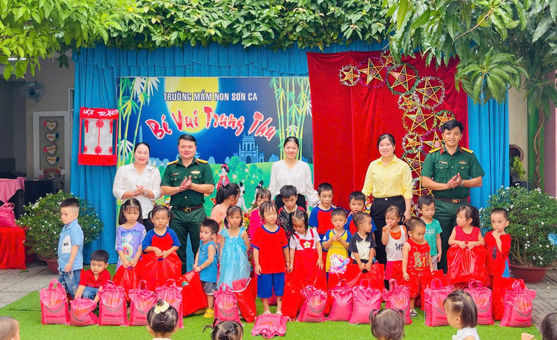 Đại đội Pháo binh 40 và Trường mầm non Sơn Ca trao tặng 20 suất quà cho các cháu thiếu nhi có hoàn cảnh khó khăn.
