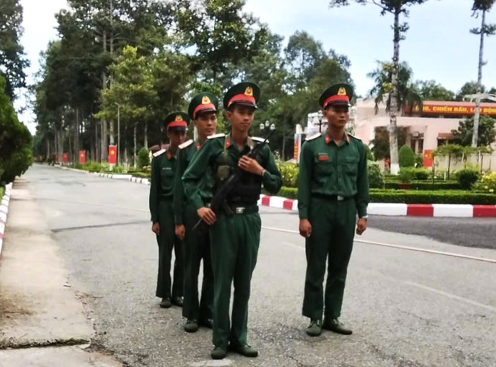 Chiến sĩ Đại đội Vệ binh 23 duy trì nghiêm công tác đóng quân canh phòng.