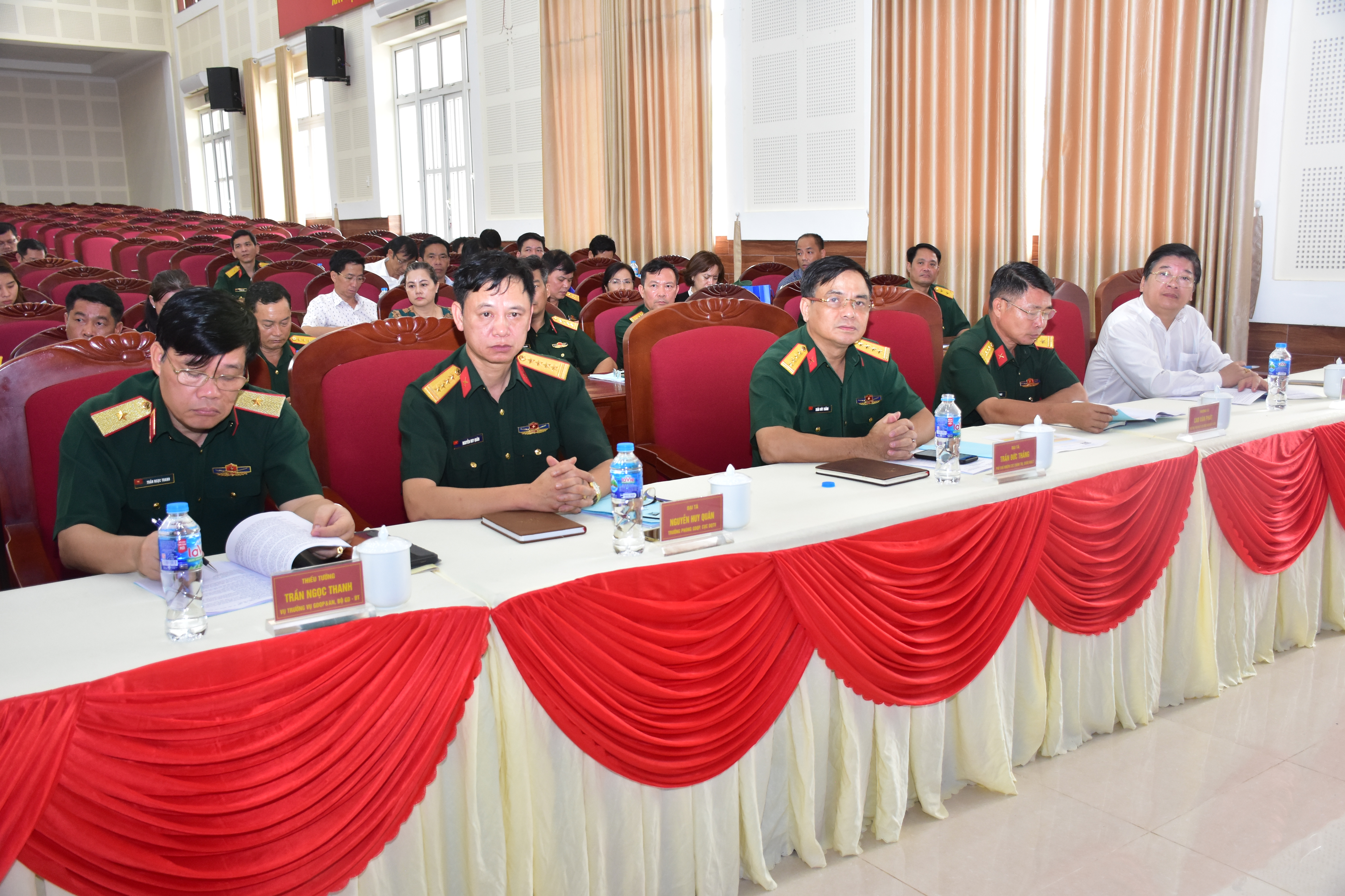 Tham dự hội nghị có Thiếu tướng Trần Ngọc Thanh - Vụ Trưởng Vụ GDQP&AN/Bộ GD&ĐT; Đại tá Trần Đức Thắng – Phó Chủ nhiệm Chính trị Quân khu 7; PGS, TS Nguyễn Minh Tâm, Phó Giám đốc ĐHQG-HCM; đại diện lãnh đạo Bộ Tư lệnh Vùng 2 Hải quân, các Trung tâm GDQP&AN trên cả nước và các học viện, nhà trường liên kết đào tạo với Trung tâm GDQP&AN ĐHQG-HCM.