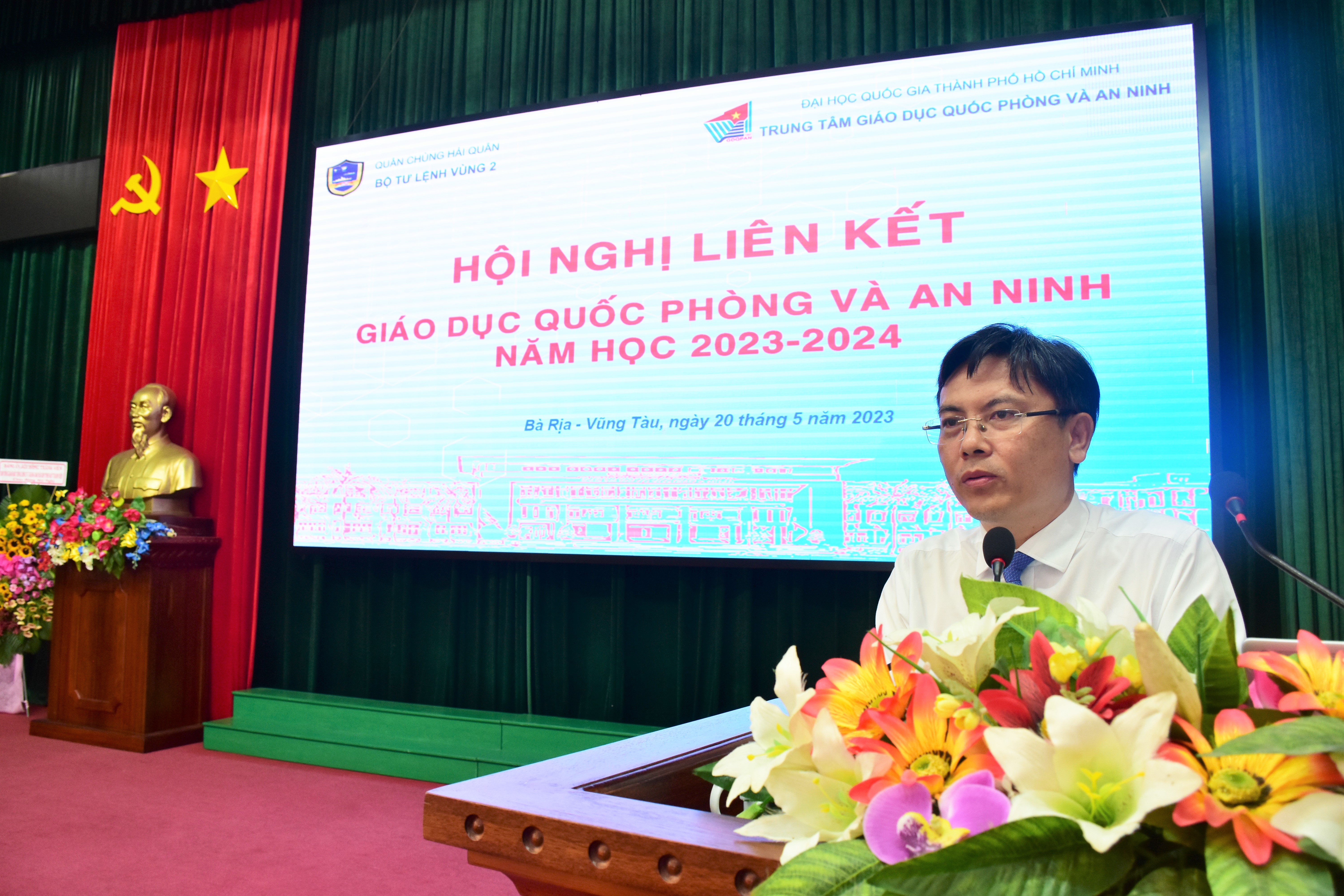 (QK7 Online) - Sáng 20-5, tại Bộ Tư lệnh Vùng 2 Quân chủng Hải quân, Trung tâm Giáo dục quốc phòng và an ninh Đại học Quốc gia TPHCM (GDQP&AN ĐHQG-HCM) tổ chức Hội nghị liên kết GDQPAN năm học 2023 - 2024. Tiến sĩ Đỗ Đại Thắng, Bí thư Đảng ủy, Giám đốc Trung tâm GDQP&AN ĐHQG-HCM chủ trì hội nghị.