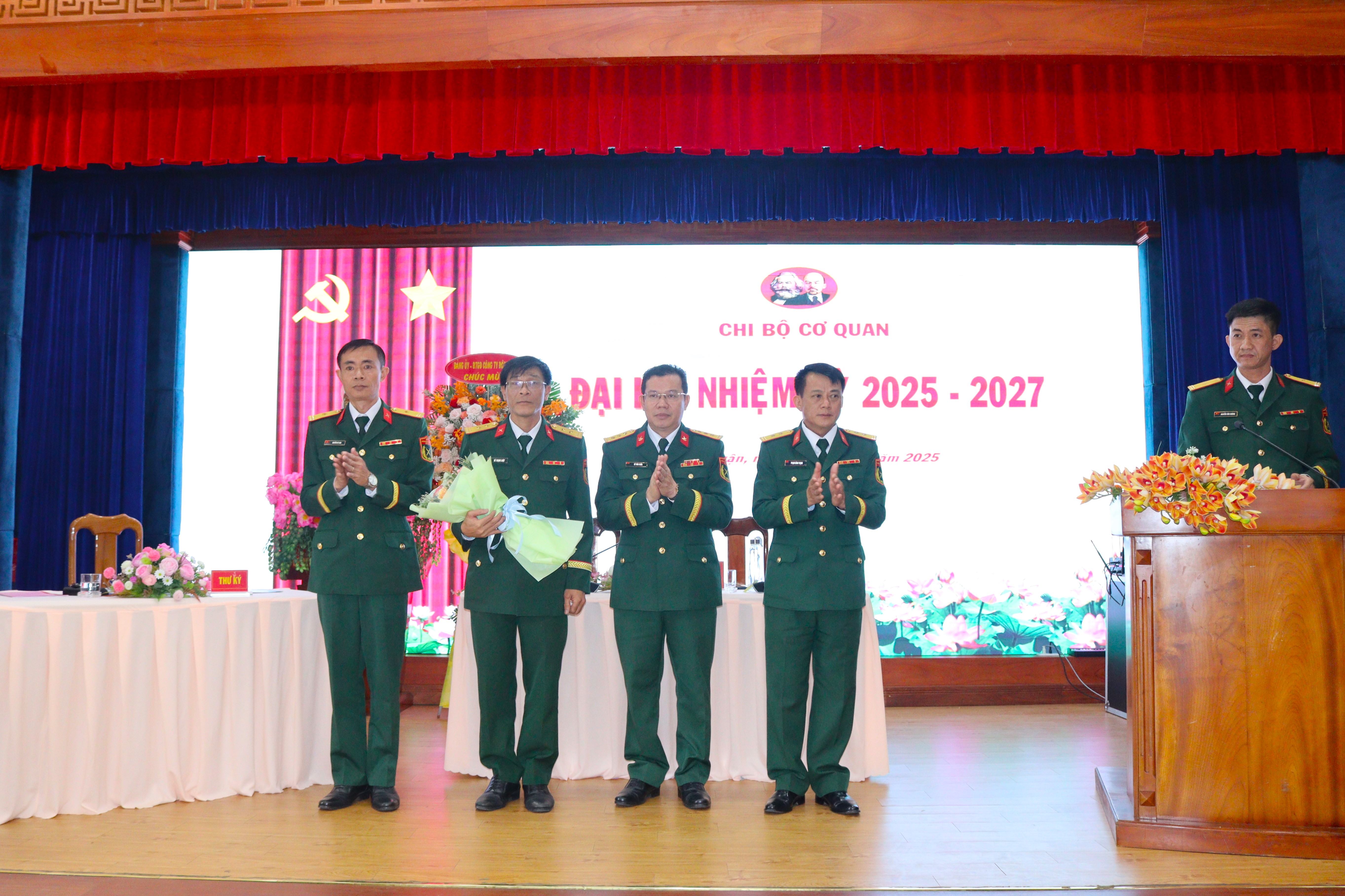 Thượng tá Lê Văn Tuấn tặng hoa chúc mừng Ban Chấp hành Chi bộ cơ quan công ty Đông Hải nhiệm kỳ 2025 - 2027. Thượng tá Lê Văn Tuấn chúc mừng các đảng viên trúng cử dự Đại hội đại biểu Đảng bộ công ty Đông Hải nhiệm kỳ 2025 - 2030.