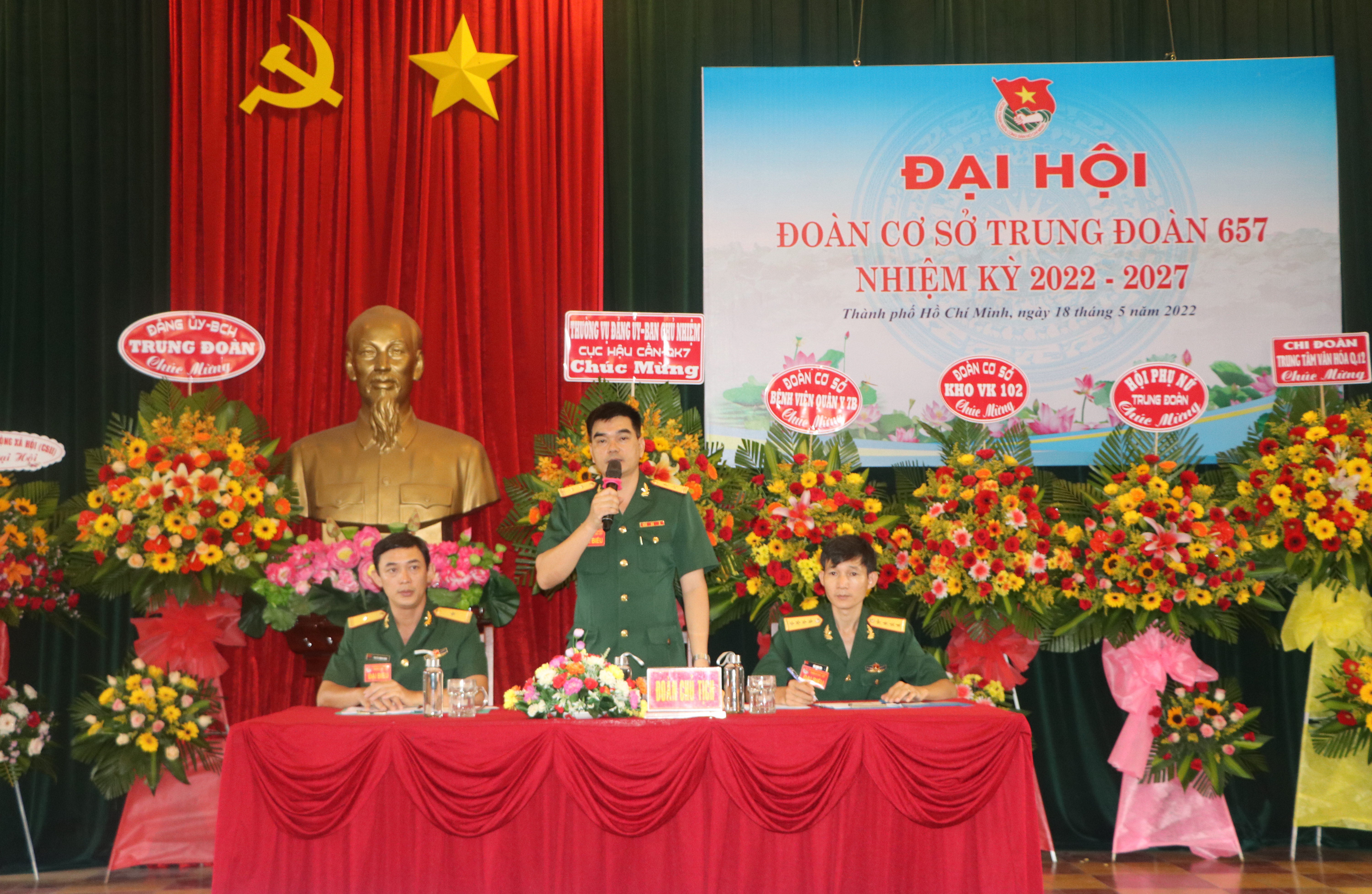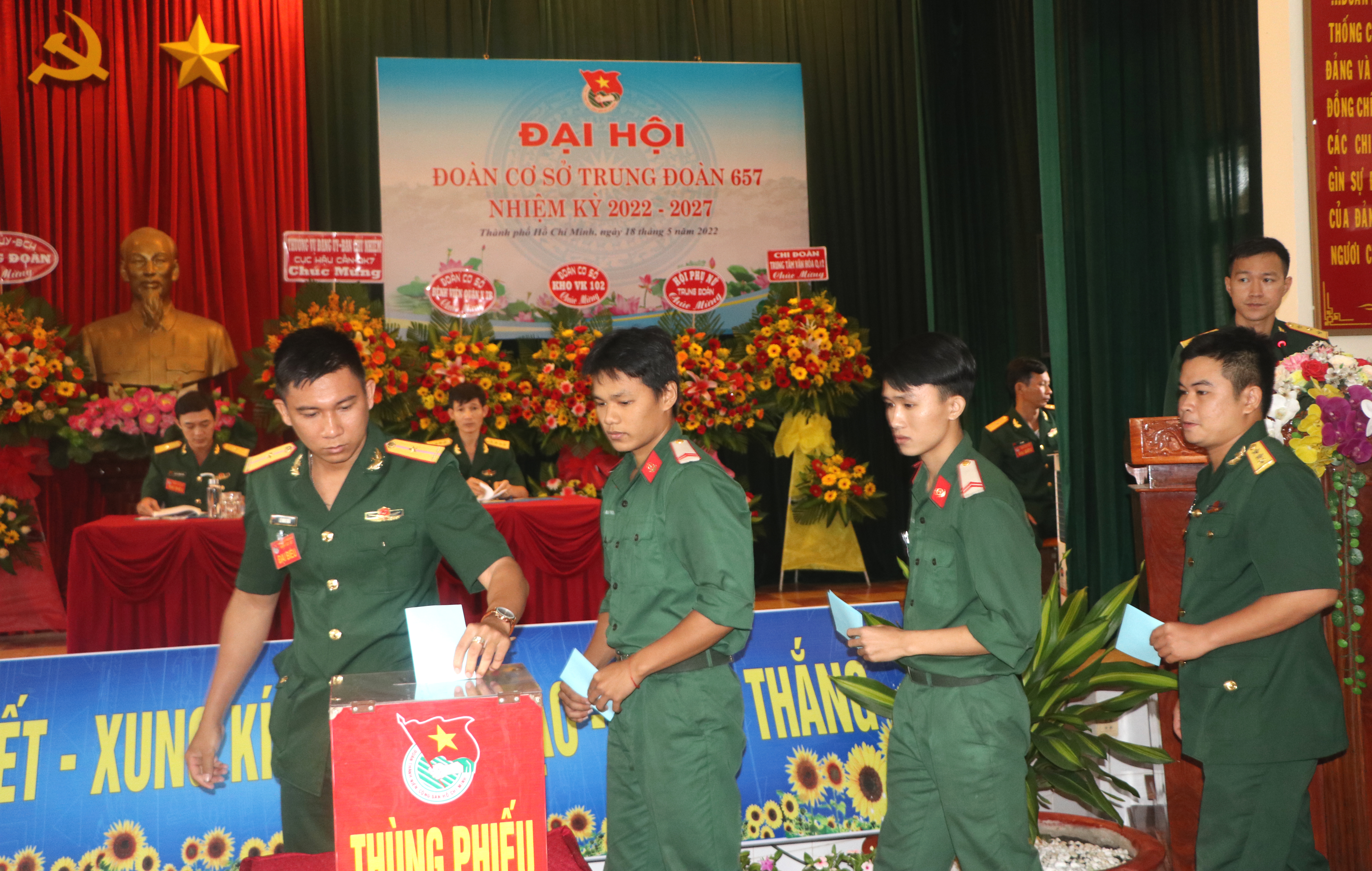 Đại hội bầu 7 đồng chí vào Ban chấp hành nhiệm kỳ 2022-2027 và bầu 15 đồng chí đi dự Đại hội đại biểu Đoàn TNCS Hồ Chí Minh Cục Hậu cần lần thứ X. Đồng chí Trung tá Vũ Công Huấn được bầu tiếp tục giữ chức vụ Bí thư Đoàn cơ sở Trung đoàn 657 nhiệm kỳ 2022-2027.