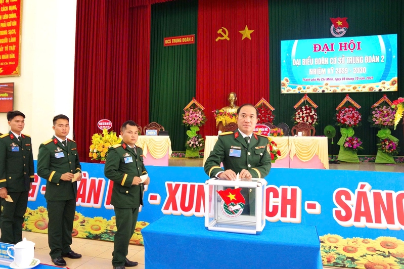 Đại hội đã bầu Ban chấp hành Đoàn cơ sở nhiệm kỳ 2025 - 2030 đúng thủ tục, nguyên tắc, thể hiện sự thống nhất, đoàn kết của tuổi trẻ trung đoàn. Trung tá Nguyễn Mạnh Cường, Phó Chủ nhiệm Chính trị Trung đoàn 2 được tín nhiệm bầu giữ chức Bí thư Đoàn cơ sở nhiệm kỳ 2025 - 2030.