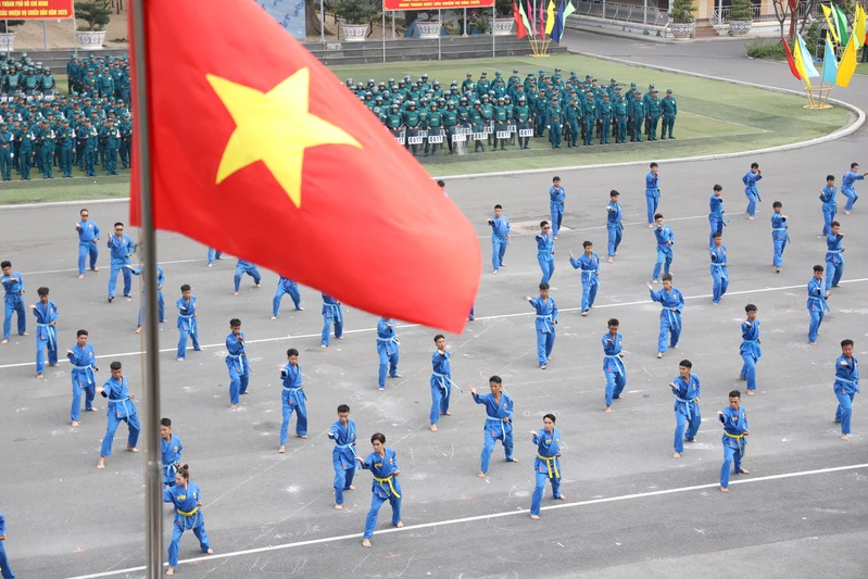 Phần biểu diễn võ Vovinam tại Lễ ra quân huấn luyện năm 2025 của Bộ Tư lệnh TP. Hồ Chí Minh (Ảnh: Kiên Cường).