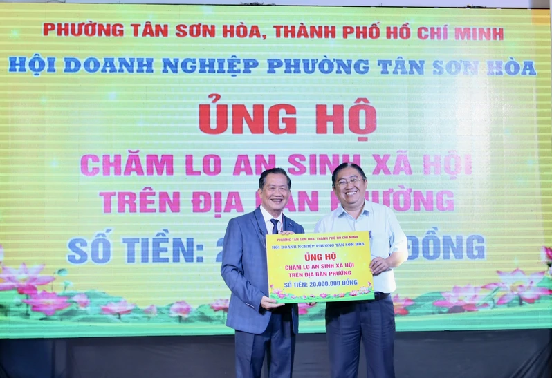 Tại buổi lễ, Hội Doanh nghiệp phường Tân Sơn Hòa gửi tặng 20 triệu đồng cho Uỷ ban nhân dân phường để phục vụ các chương trình an sinh xã hội và 20 triệu đồng cho Ủy ban MTTQ Việt Nam phường Tân Sơn Hòa, nhằm hỗ trợ người dân miền Trung khắc phục thiệt hại mưa lũ.
