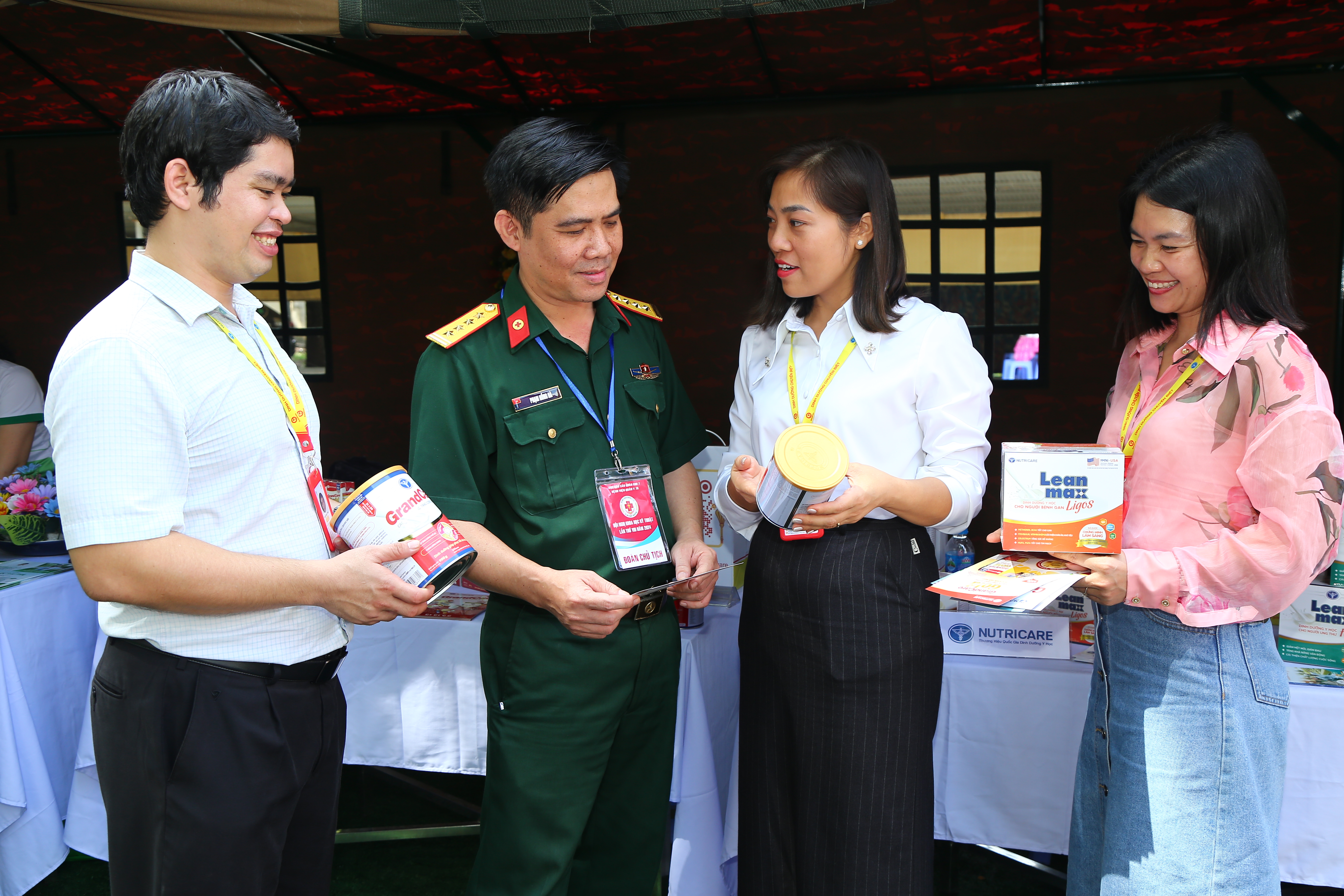 Bác sĩ Phạm Hồng Hà trao đổi về các sản phẩm y tế tại Hội nghị Khoa học Kỹ thuật lần thứ VIII năm 2024 tại Bệnh viện Quân y 7B.
