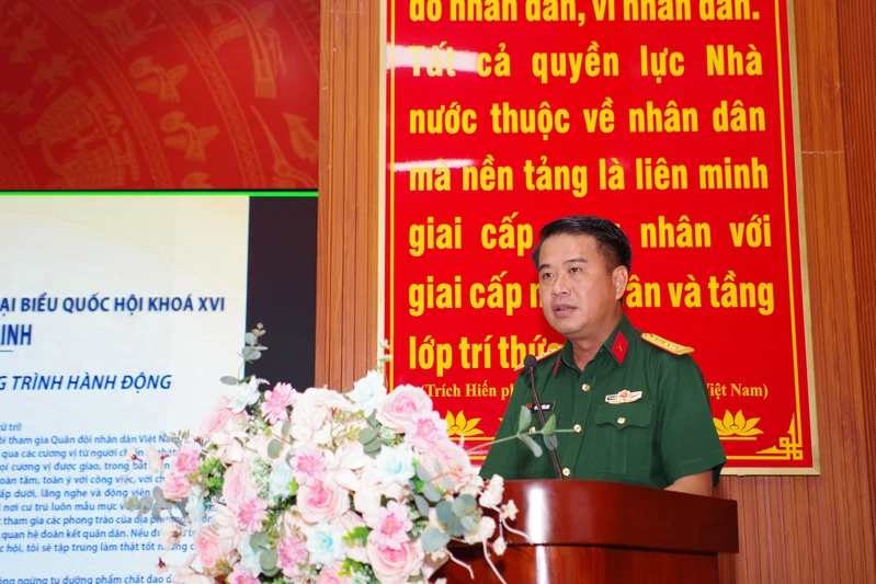 Đại tá Nguyễn Tấn Linh, Phó Tư lệnh Quân khu 7 trình trình bày chương trình hành động trước cử tri.