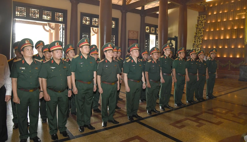 (QK7 Online) - Ngày 16/4, Đại tướng Nguyễn Trọng Nghĩa, Ủy viên Bộ Chính trị, Bí thư Trung ương Đảng, Ủy viên Thường vụ Quân ủy Trung ương, Chủ nhiệm Tổng cục Chính trị Quân đội Nhân dân Việt Nam cùng đoàn công tác Quân ủy Trung ương, Bộ Quốc phòng, Tổng cục Chính trị đến thăm, làm việc tại Trường Thiếu sinh quân miền Nam và Địa đạo Củ Chi. Tham gia đoàn có Trung tướng Trần Vinh Ngọc, Bí thư Đảng ủy, Chính ủy Quân khu 7; Thủ trưởng các cơ quan thuộc Tổng cục Chính trị; Thủ trưởng Bộ Tham mưu, Cục Chính trị, Cục Hậu cần – Kỹ thuật Quân khu 7 và Bộ Tư lệnh Thành phố Hồ Chí Minh.