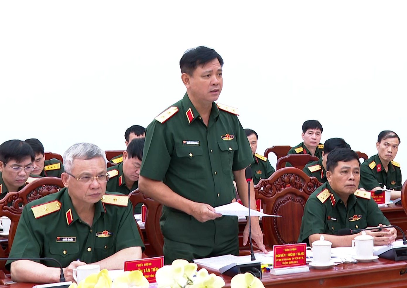 Trung tướng Nguyễn Trường Thắng, Ủy viên Trung ương Đảng, Tư lệnh Quân khu 7 phát biểu tại buổi làm việc (Ảnh: Minh Sơn).