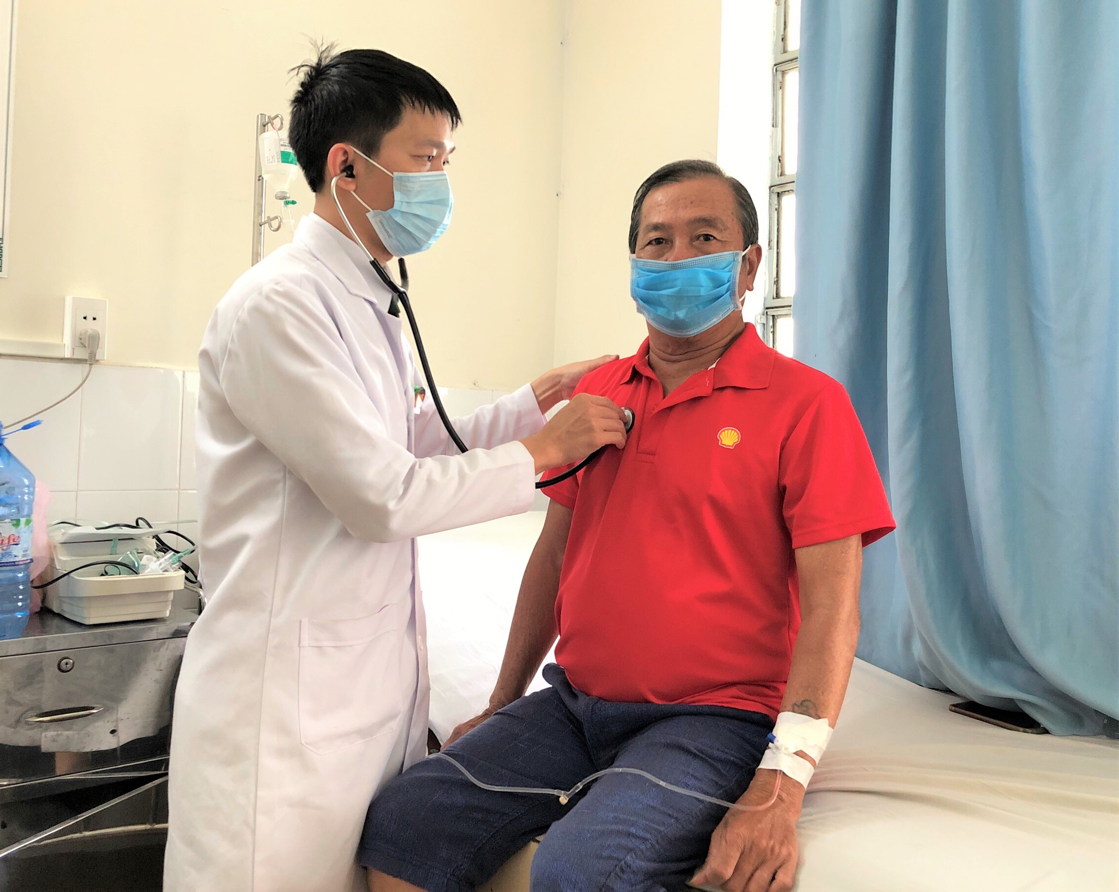 Đại úy, bác sĩ Phạm Đình Duy thăm, khám cho bệnh nhân.
