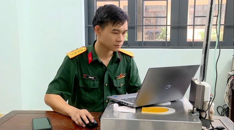 Đại úy Võ Đình Hùng say mê nghiên cứu thực hiện các nhiệm vụ. Ảnh: NVCC