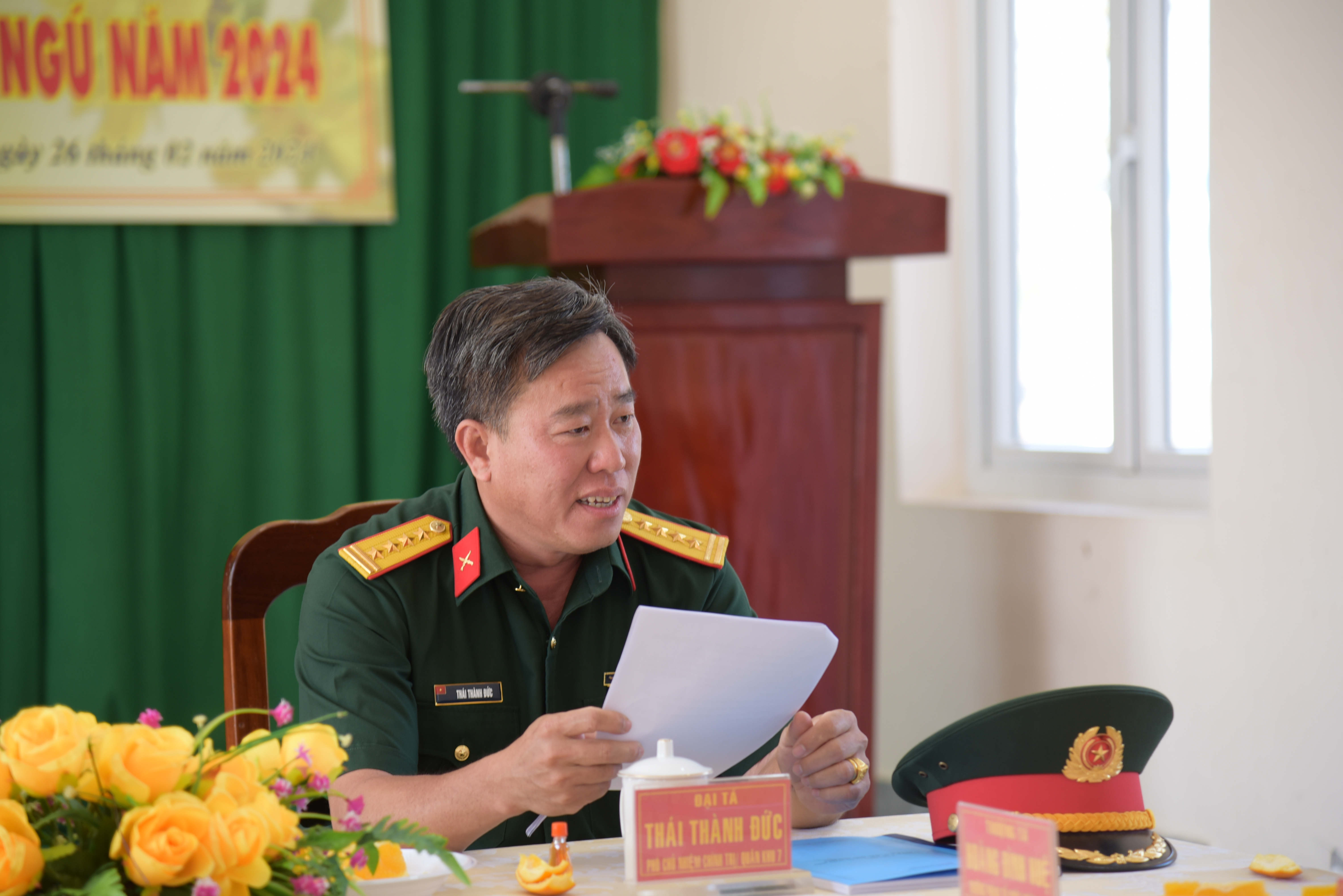 Đại tá Thái Thành Đức, Phó Chủ nhiệm Chính trị Quân khu và lãnh đạo địa phương chúc mừng đảng viên trẻ nhập ngũ 2024.