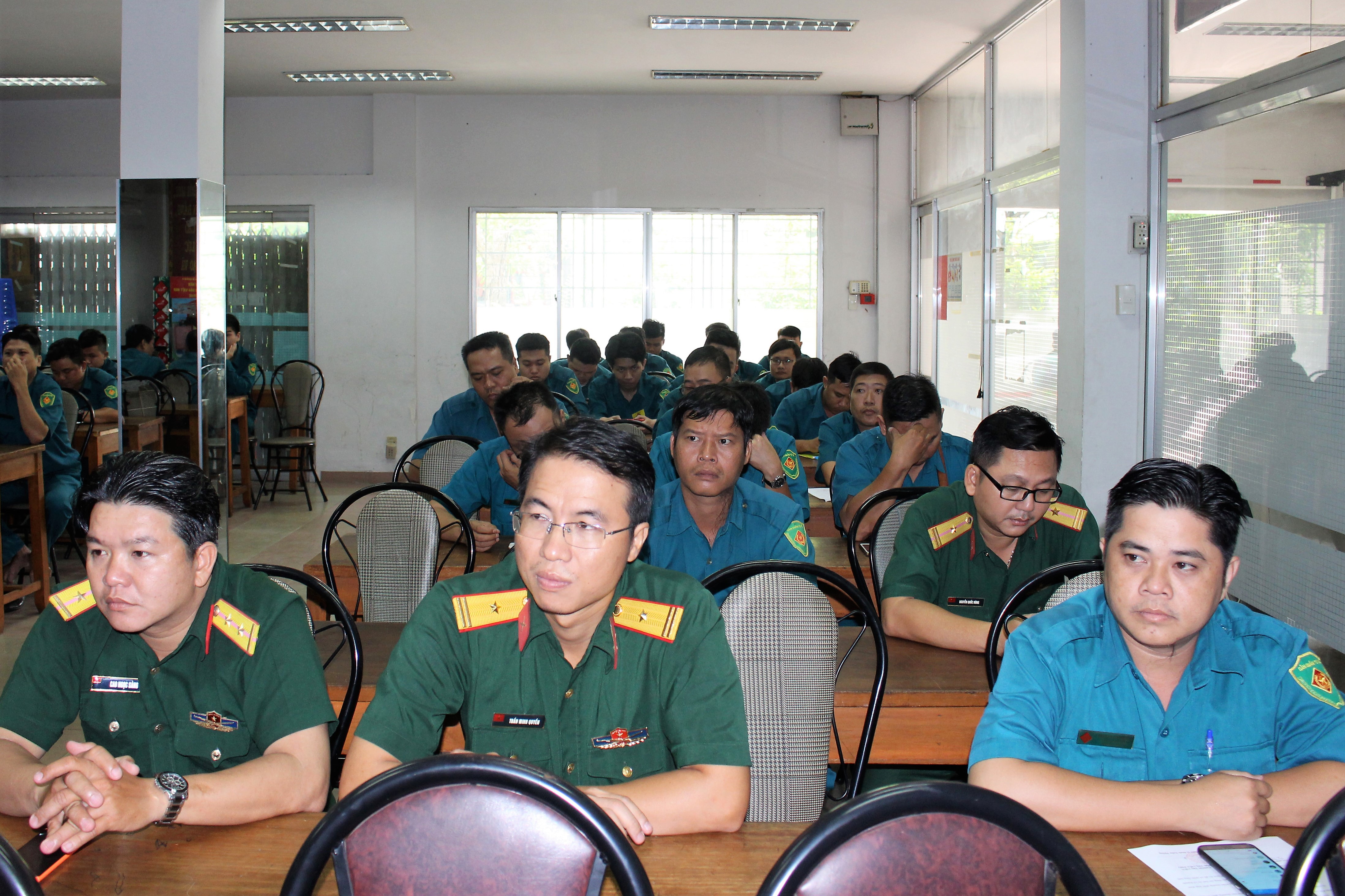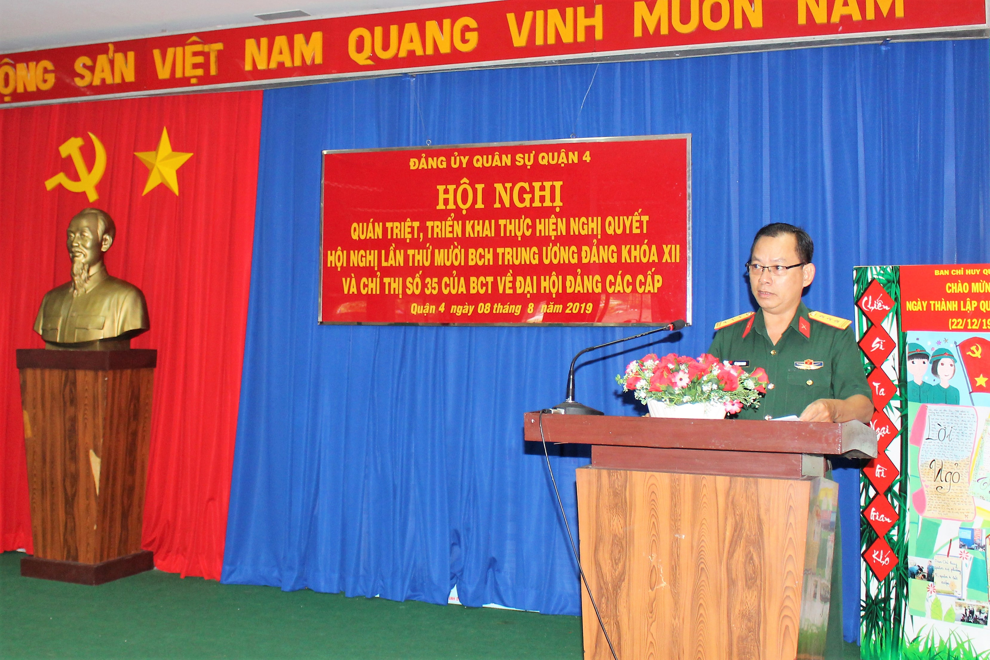 Thượng tá Vũ Trọng Khanh, Phó Bí thư Đảng ủy – Chính trị viên Ban CHQS quận quán triệt các nội dung của Nghị quyết Trung ương 10 như: Đề cương văn kiện trình Đại hội XII của Đảng; Báo cáo 10 năm thực hiện cương lĩnh 2011 (bổ sung và phát triển); Báo cáo tổng kết thực hiện Chiến lược phát triển kinh tế - xã hội 10 năm 2011 – 2020, xây dựng chiến lược phát triển kinh tế - xã hội 10 năm 2021 – 2030; Báo cáo tổng kết công tác xây dựng Đảng và thi hành Điều lệ Đảng và quán triệt, tiển khai Chỉ thị số 35 ngày 30/5/2019 của Bộ Chính trị về Đại hội Đảng bộ các cấp tiến tới Đại hội Đại biểu toàn quốc lần thứ XIII của Đảng.