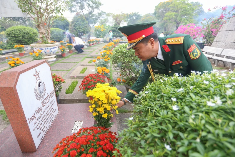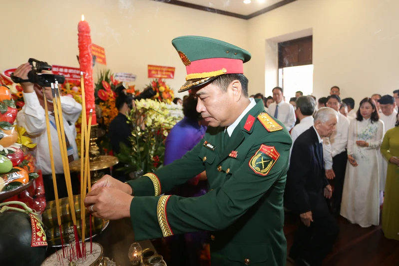 Đại tá Nguyễn Tấn Linh dâng hương cố Trung tướng Nguyễn Bình, nguyên Tư lệnh Quân khu 7.
