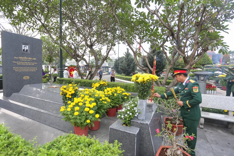 Đại tá Nguyễn Tấn Linh dâng hương tại Nghĩa trang Liệt sĩ TPHCM.