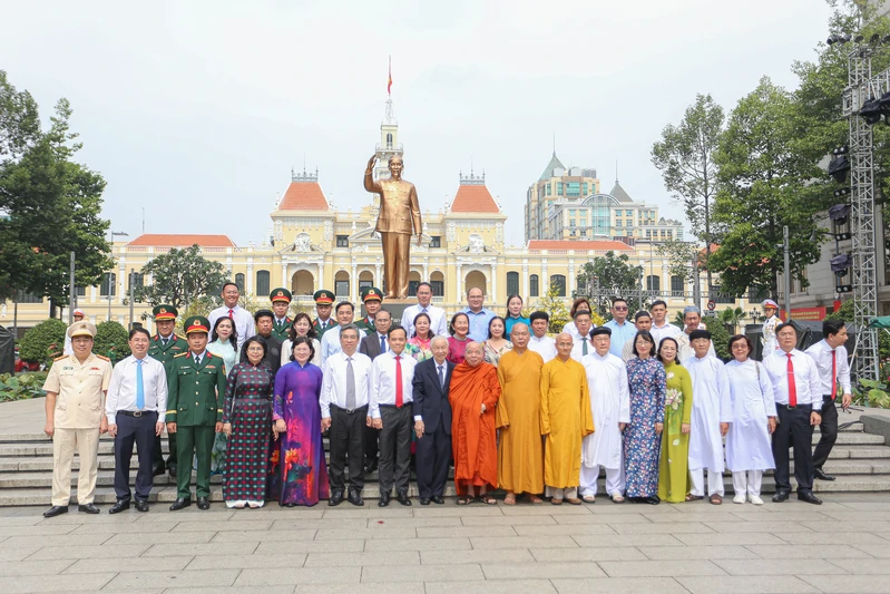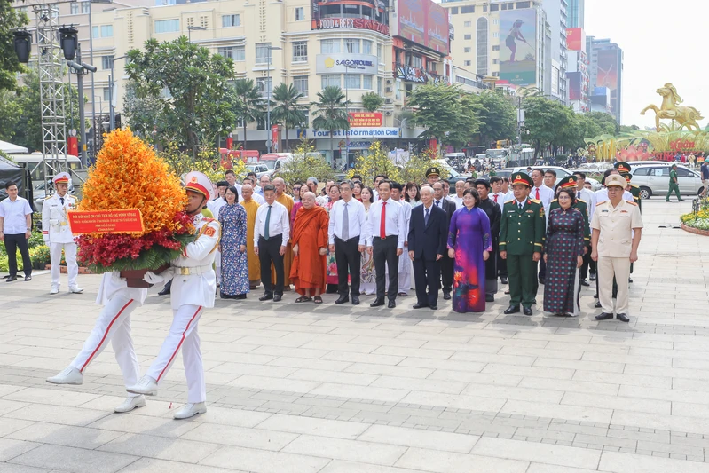 Sau đó, đoàn đến dâng hoa và dành phút mặc niệm tưởng nhớ công lao to lớn của Chủ tịch Hồ Chí Minh tại công viên Tượng đài Chủ tịch Hồ Chí Minh (đường Nguyễn Huệ, phường Sài Gòn, TPHCM).