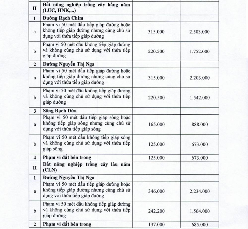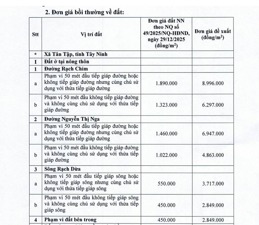 Công khai đơn giá bồi thường theo từng vị trí
