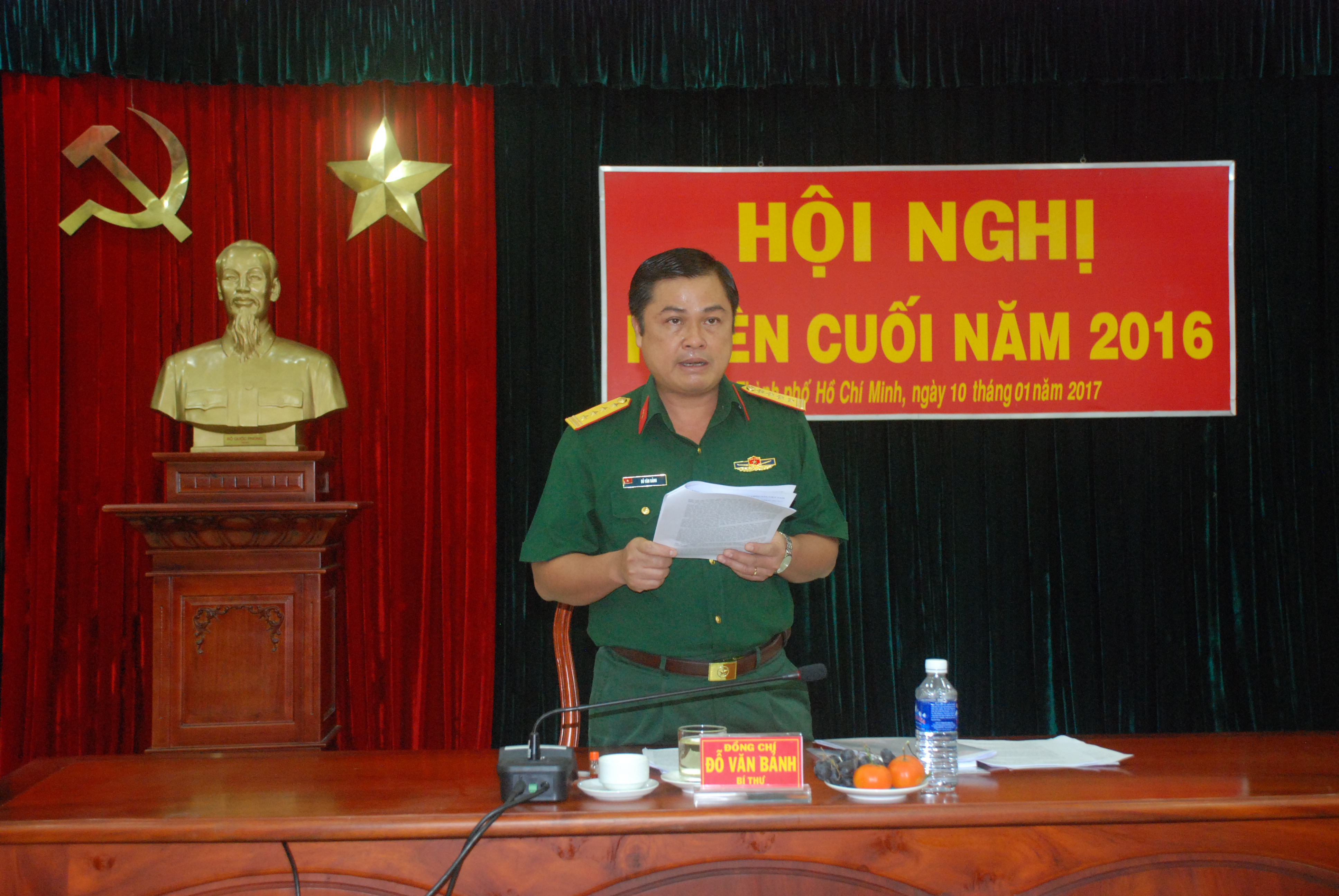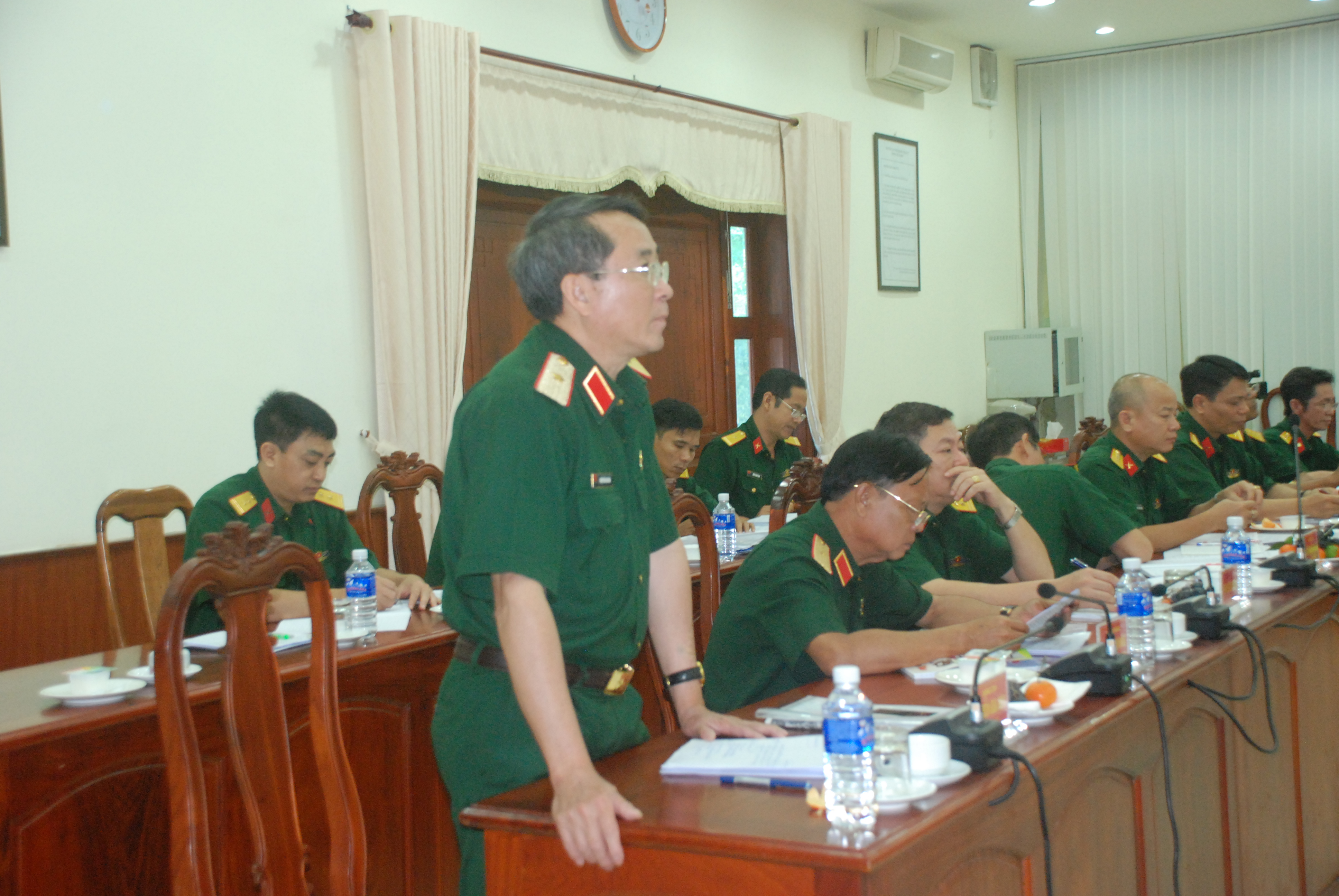Đại tá Đỗ Văn Bảnh, Bí thư Đảng ủy Cục Chính trị, Phó Chủ nhiệm Chính trị Quân khu chủ trì hội nghị