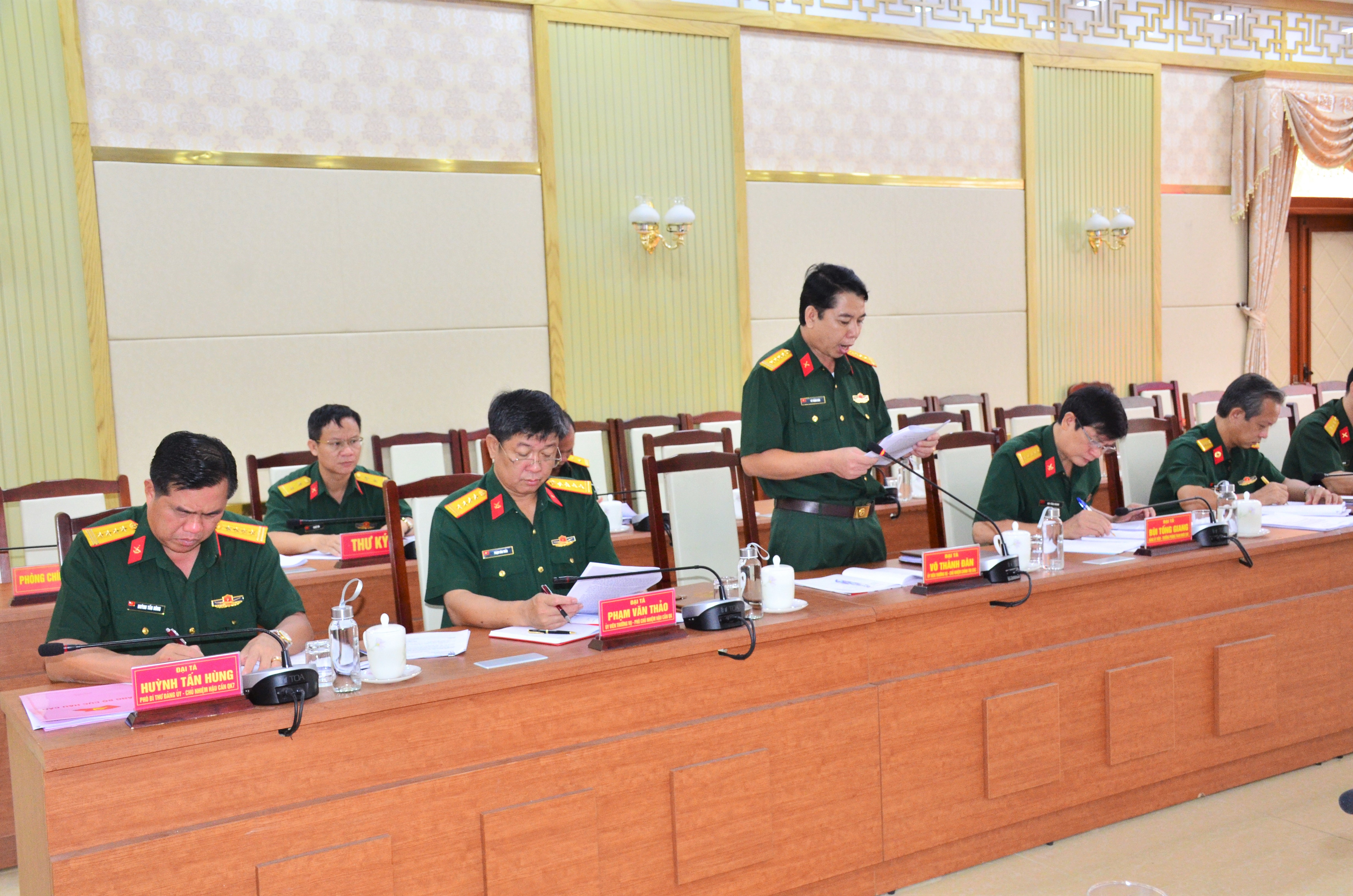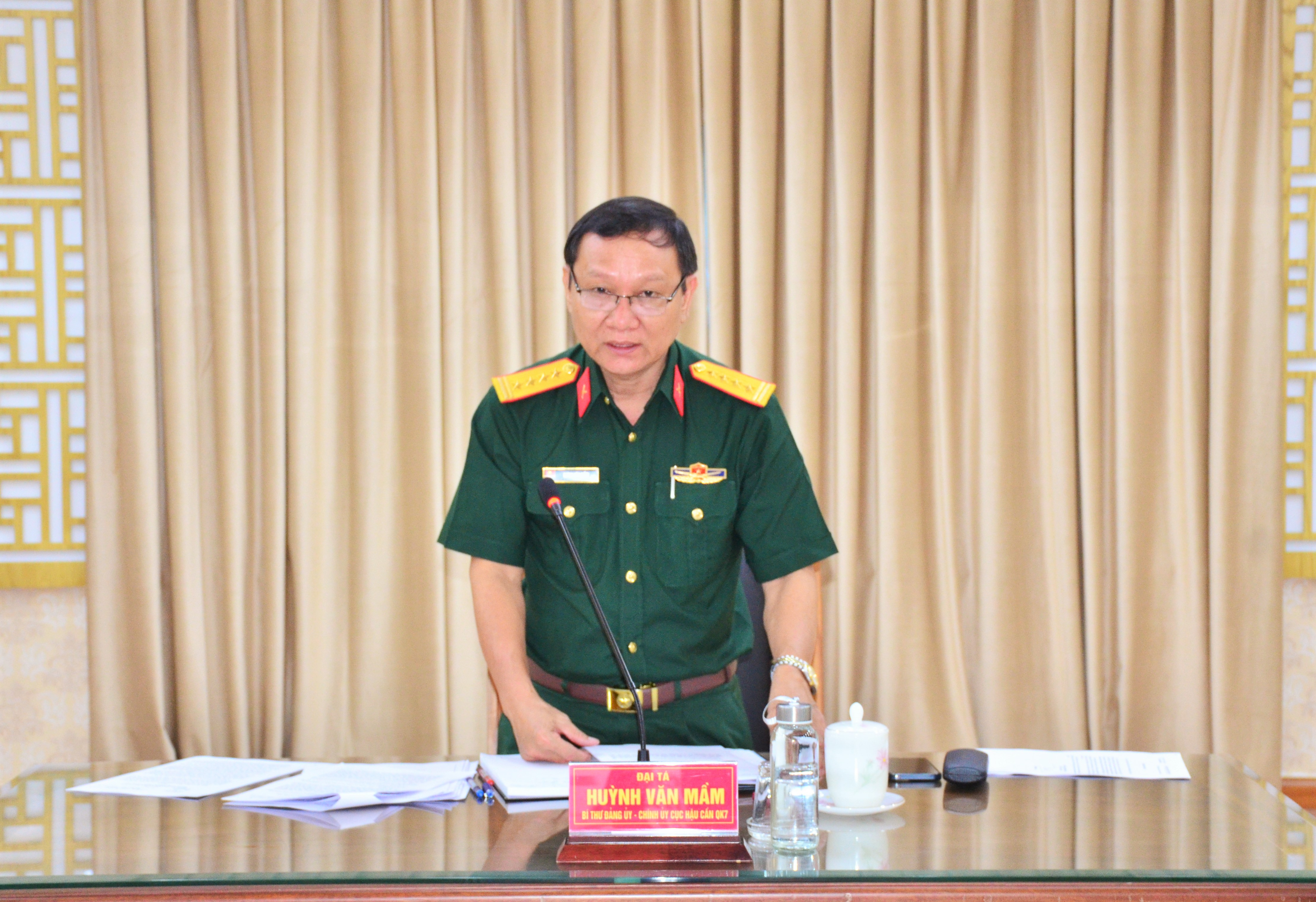 Đại tá Huỳnh Văn Mầm, Bí thư Đảng ủy, Chính ủy Cục Hậu cần chủ trì hội nghị.