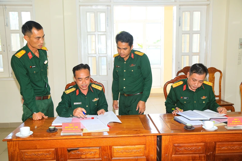 Đại tá Nguyễn Hồng Cảnh, Phó Chủ nhiệm Chính trị Quân khu tiến hành kiểm tra các nội dung theo kế hoạch.