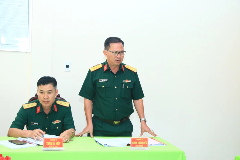 Thượng tá Vũ Công Huấn, Bí thư Đảng ủy, Chính trị viên Kho K75 chủ trì hội nghị.