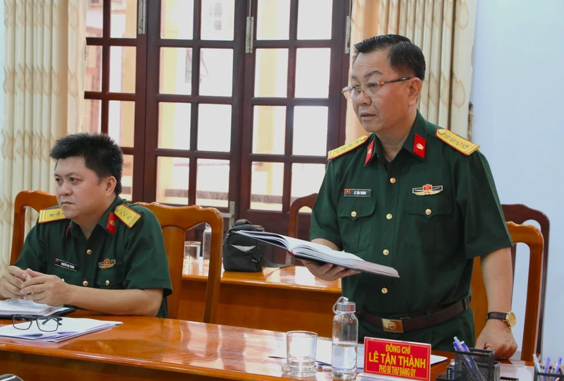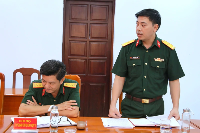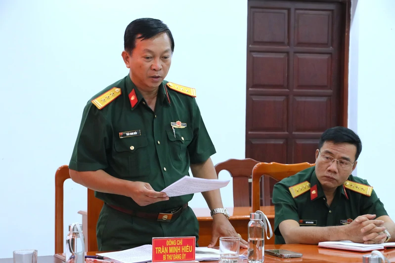 Thượng tá Trần Thái Khương, Ủy viên Thường vụ Đảng ủy, Chủ nhiệm Chính trị Bộ Tham mưu Quân khu phát biểu chỉ đạo Hội nghị.