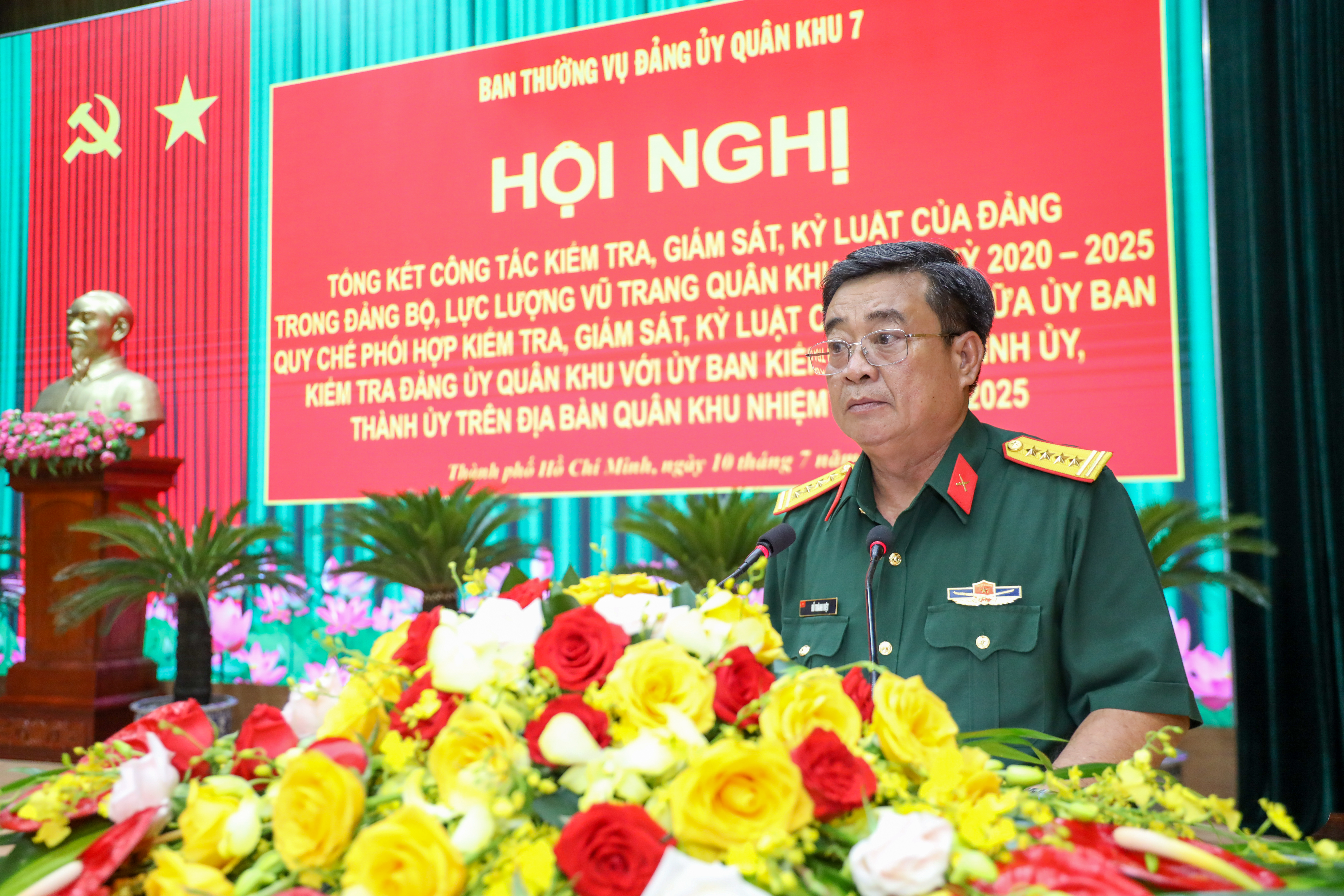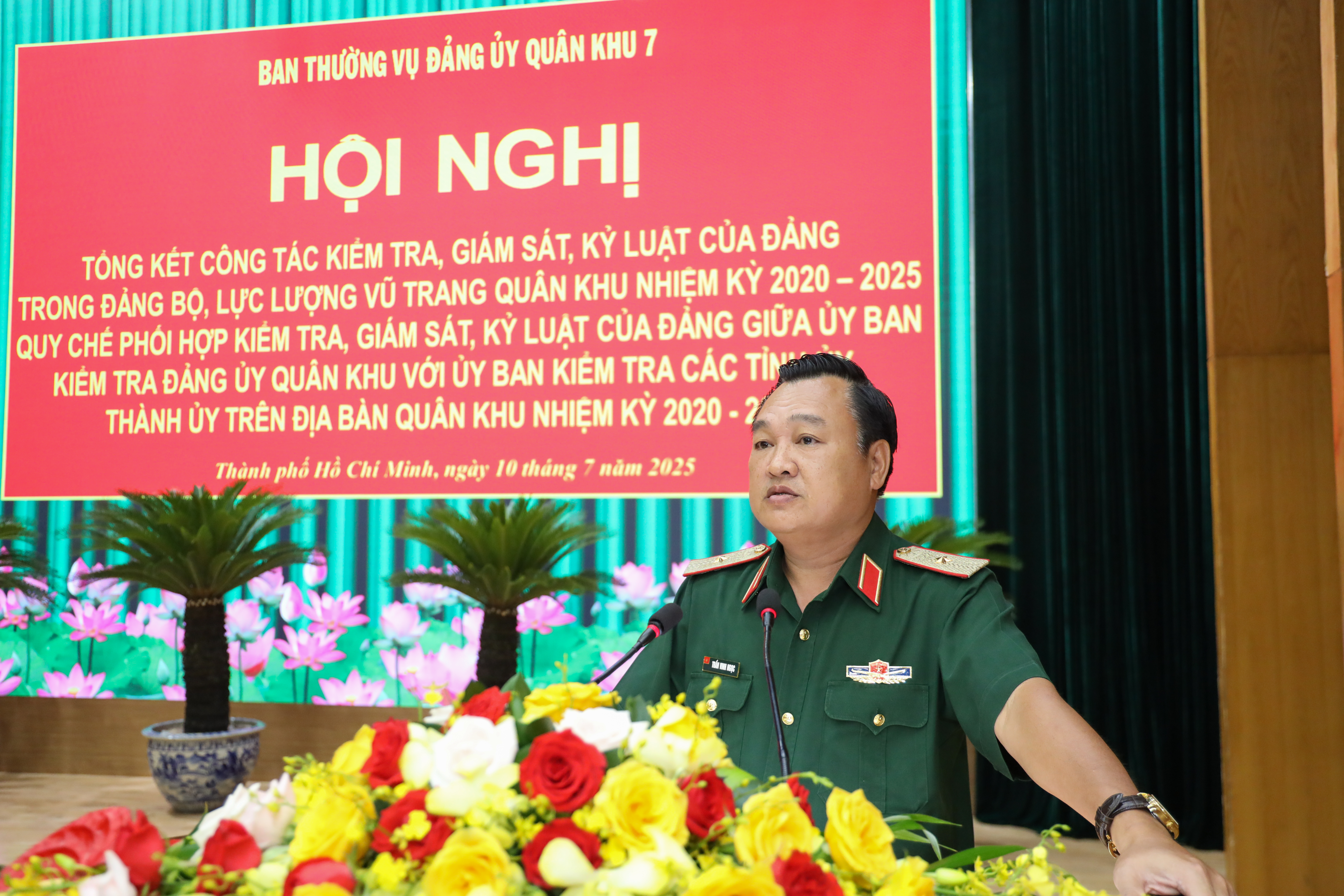 Thiếu tướng Trần Vinh Ngọc, Bí thư Đảng ủy, Chính ủy Quân khu 7 chủ trì hội nghị.