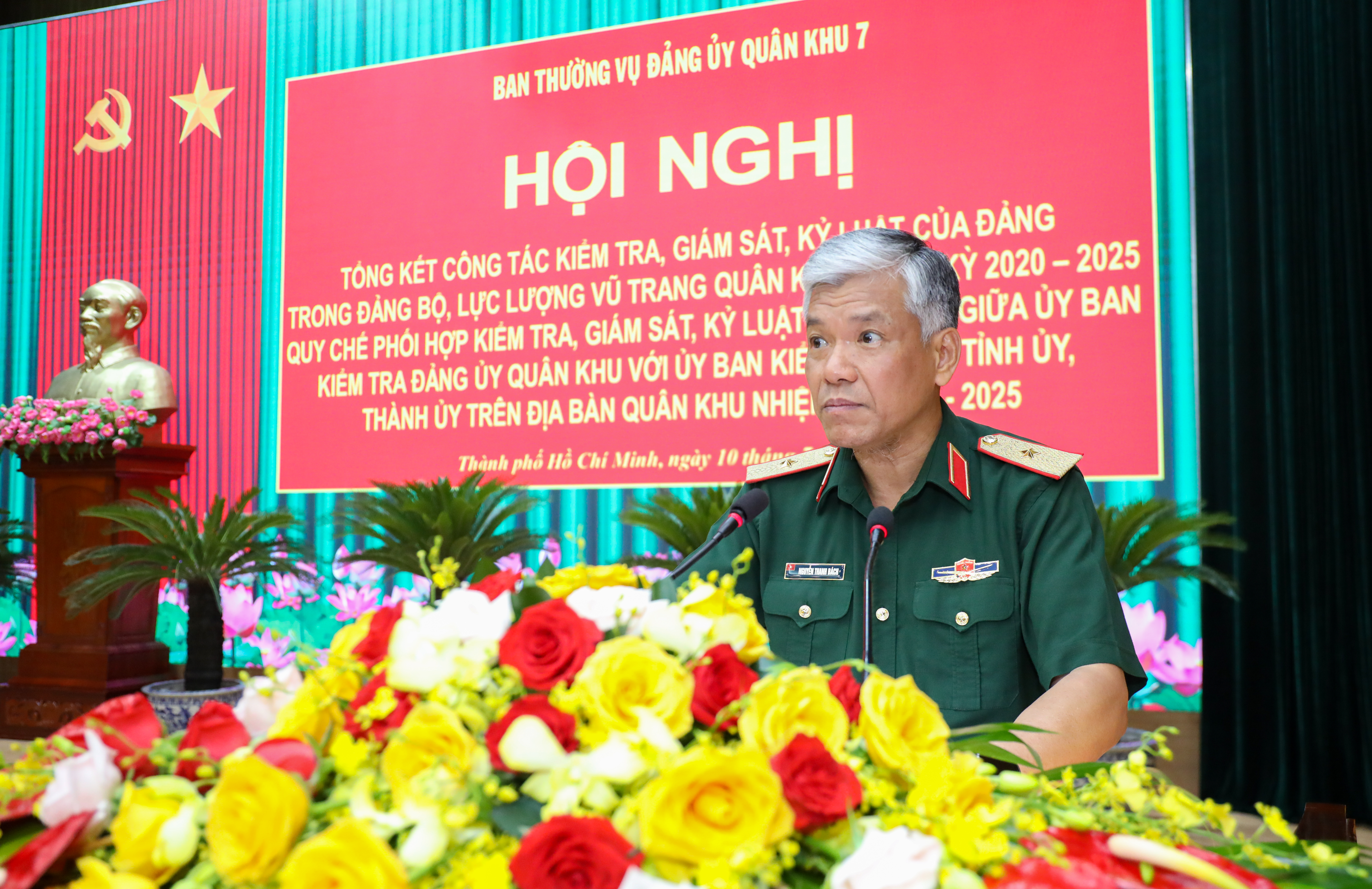 Phát biểu chỉ đạo hội nghị, Thiếu tướng Nguyễn Thanh Bách, Ủy viên chuyên trách UBKT Quân ủy Trung ương đánh giá cao công tác kiểm tra, giám sát, kỷ luật Đảng trong Đảng bộ, LLVT Quân khu 7 trong nhiệm kỳ qua. Hiện nay trong nước vừa sắp xếp lại tổ chức bộ máy của hệ thống chính trị, thực hiện mô hình chính quyền địa phương 2 cấp và trước yều cầu xây dựng Quân đội “tinh, gọn, mạnh” đặt ra yêu cầu rất cao đối với công tác xây dựng Đảng bộ Quân đội trong sạch, vững mạnh, đặt biệt là yêu cầu đối với công tác kiểm tra, giám sát, kỷ luật đảng, Thiếu tướng Nguyễn Thanh Bách đề nghị Ban Thường vụ Đảng ủy Quân khu 7 phải tập trung lãnh đạo, chỉ đạo không ngừng nâng cao chất lượng, hiệu lực, hiệu quả công tác kiểm tra, giám sát; đổi mới tư duy, phương pháp, cách thức tổ chức, chuyển trọng tâm sang phòng ngừa.