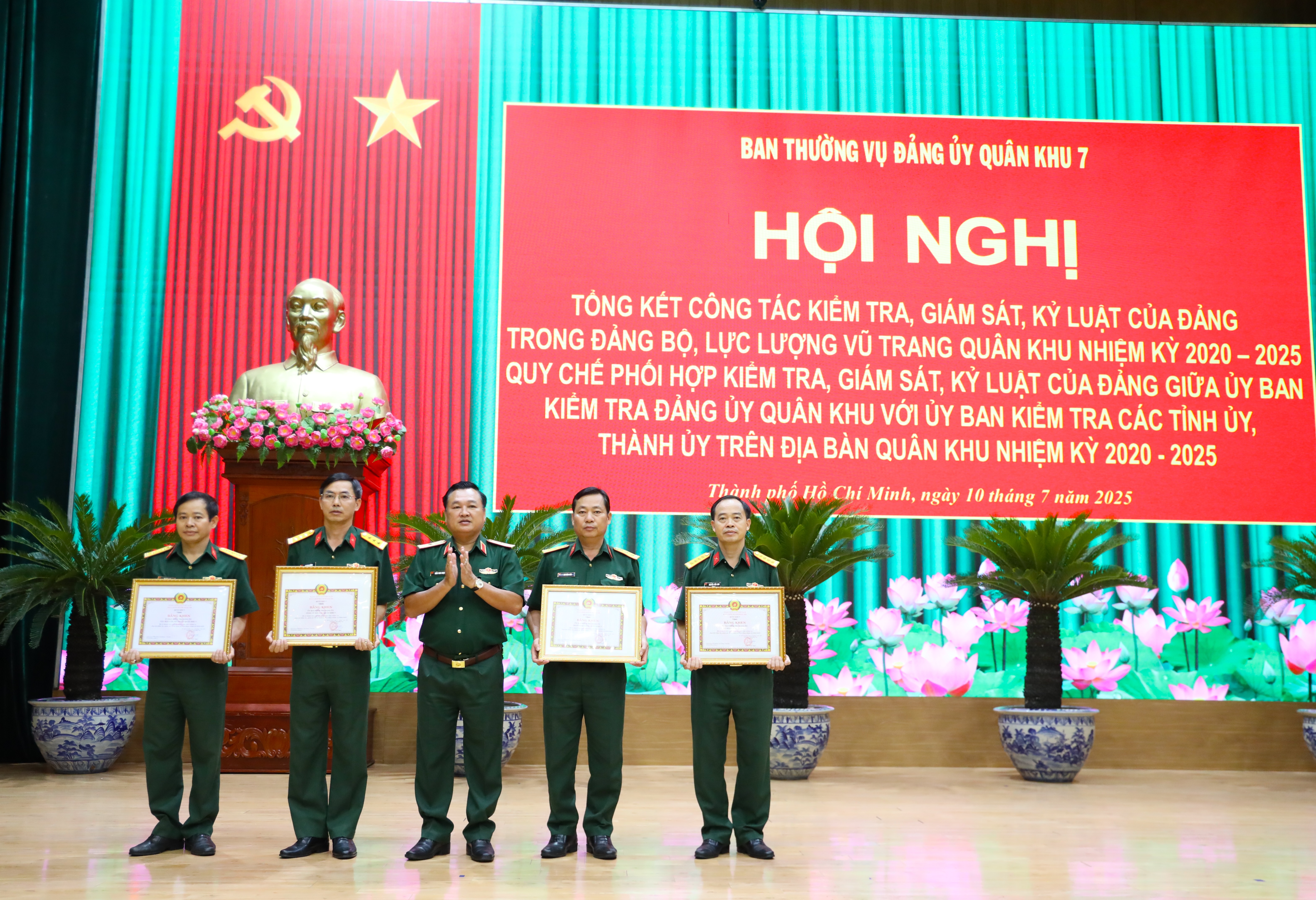 Tại hội nghị, Thiếu tướng Trần Vinh Ngọc, Bí thư Đảng ủy, Chính ủy Quân khu 7 đã trao khen thưởng cho 4 tập thể hoàn thành xuất sắc nhiệm vụ trong công tác kiểm tra, giám sát, thi hành kỷ luật Đảng.