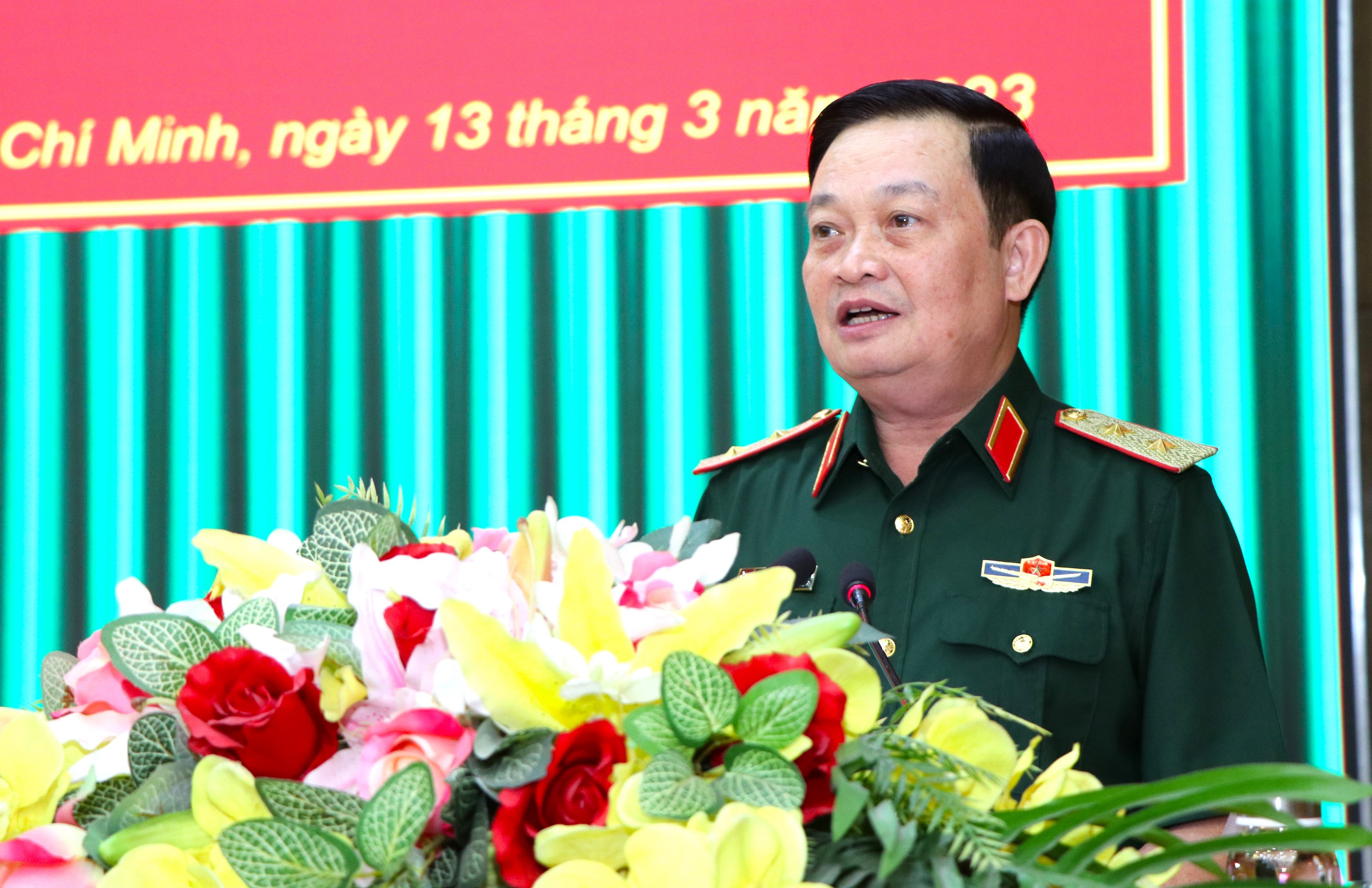 Trung tướng Trần Hoài Trung, Bí thư Đảng ủy, Chính ủy Quân khu phát biểu chỉ đạo tại hội nghị.