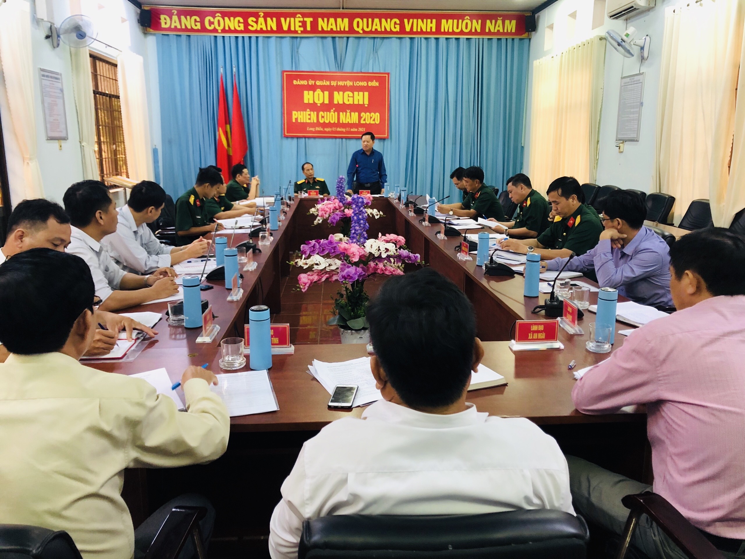 Năm 2021, ĐUQS huyện tiếp tục quán triệt, triển khai thực hiện có hiệu quả Nghị quyết Đại hội đại biểu toàn quốc lần thứ XIII của Đảng và nghị quyết Đại hội Đảng các cấp nhiệm kỳ 2020-2025; các nghị quyết, chỉ thị, quy định của cấp trên về nhiệm vụ QP,QSĐP. Chủ động phối hợp với cấp ủy, chính quyền địa phương xây dựng thế trận quốc phòng toàn dân gắn với thế trận an ninh Nhân dân, xây dựng khu vực phòng thủ vững chắc. Tập trung xây dựng LLVT huyện VMTD “Mẫu mực, tiêu biểu”; xây dựng chi, Đảng bộ Quân sự địa phương vững mạnh về chính trị, tư tưởng, tổ chức và đạo đức, nâng cao năng lực lãnh đạo, sức chiến đấu, hoàn thành tốt mọi nhiệm vụ được giao.
