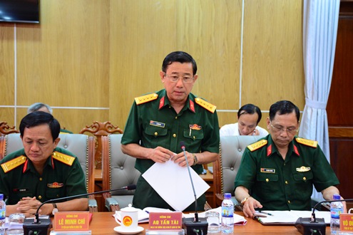 Đồng chí Ao Tấn Tài, Phó Bí thư Thường trực Đảng ủy Quân sự, Chính ủy Bộ CHQS tỉnh Bình Dương quán triệt  nghị quyết của Đảng ủy Quân khu về lãnh đạo thực hiện nhiệm vụ quân sự, quốc phòng và xây dựng Đảng bộ năm 2019