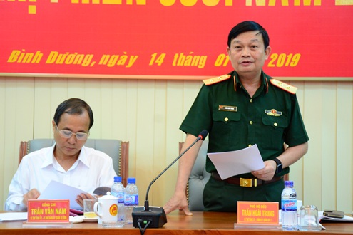 Phát biểu tại hội nghị, Phó Đô đốc Trần Hoài Trung, Bí thư Đảng ủy, Chính ủy Quân 7 đánh giá cao những kết quả đạt được của Đảng ủy Quân sự tỉnh Bình Dương trong lãnh đạo LLVT tỉnh hoàn thành thắng lợi nhiệm vụ quân sự - quốc phòng địa phương năm 2018. Đồng chí Chính ủy Quân khu nhận định, trong năm 2019, bên cạnh những thuận lợi cơ bản, vẫn còn tiềm ẩn yếu tố gây mất ổn định ở các địa phương, trong đó có tỉnh Bình Dương, do đó, Đảng ủy Quân sự tỉnh cần tiếp tục tăng cường lãnh đạo LLVT tỉnh nắm chắc tình hình, đề xuất những biện pháp xử trí kịp thời, hiệu quả các vụ việc phức tạp xảy ra trên địa bàn; tham mưu tạo sự gắn kết chặt chẽ giữa Tỉnh ủy – UBND tỉnh với Đảng ủy – Bộ Tư lệnh Quân khu trong lãnh đạo nhiệm vụ quân sự - quốc phòng của địa phương.