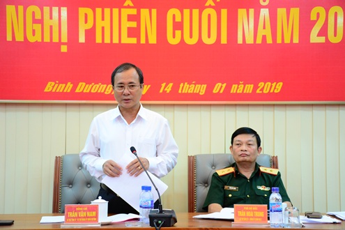 (QK7 Online)  - Ngày 14/1, Đảng ủy Quân sự tỉnh Bình Dương tổ chức hội nghị phiên cuối năm 2018. Đến dự và chỉ đạo hội nghị có Phó Đô đốc Trần Hoài Trung, Bí thư Đảng ủy, Chính ủy Quân 7. Đồng chí Trần Văn Nam, Ủy viên Trung ương Đảng, Bí thư Tỉnh ủy, Bí thư Đảng ủy Quân sự tỉnh chủ trì hội nghị. Tham dự hội nghị có đồng chí Trần Thanh Liêm, Phó Bí thư Tỉnh ủy, Chủ tịch UBND tỉnh và Bí thư các huyện, thị xã, thành phố của tỉnh Bình Dương.