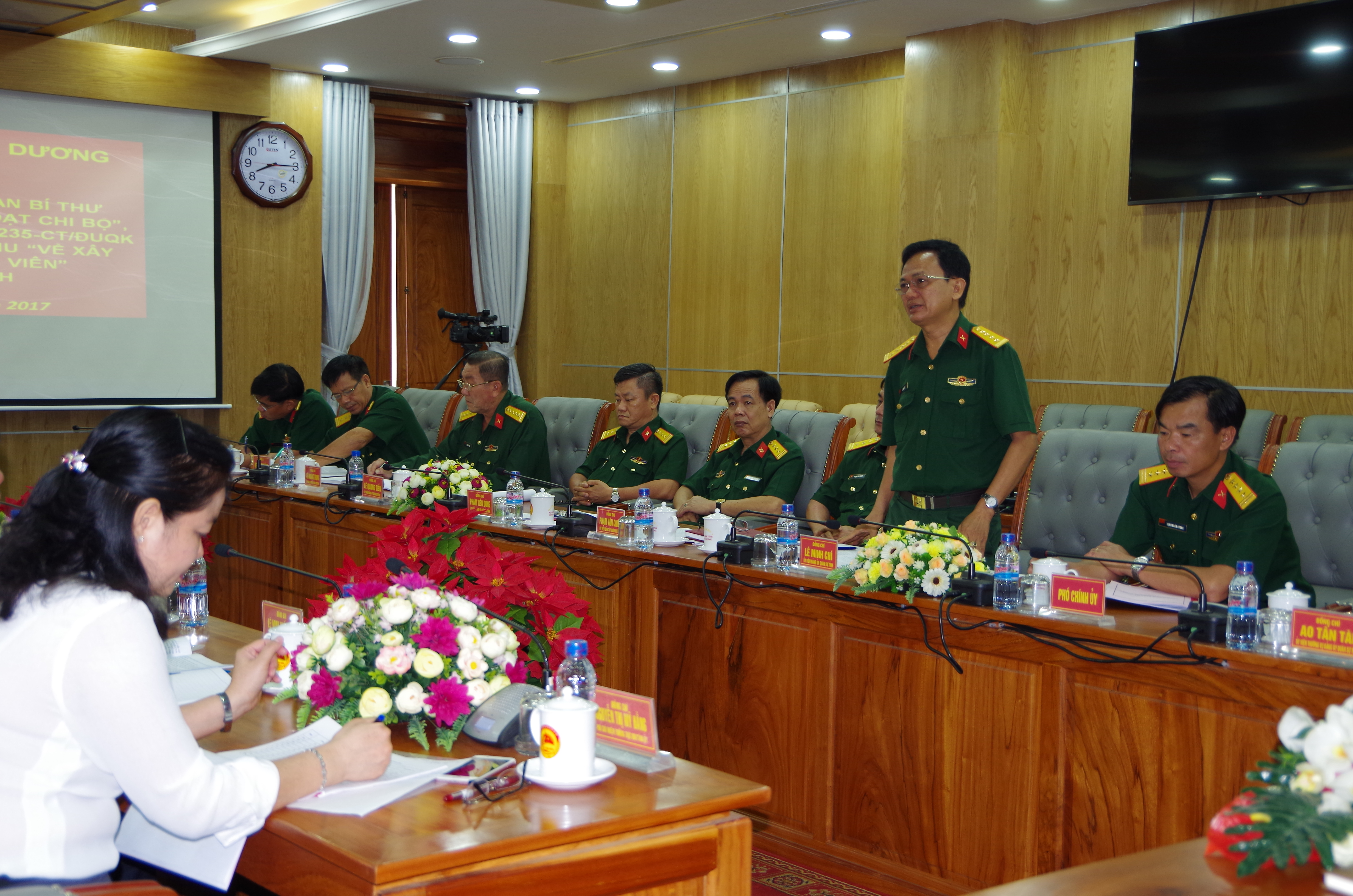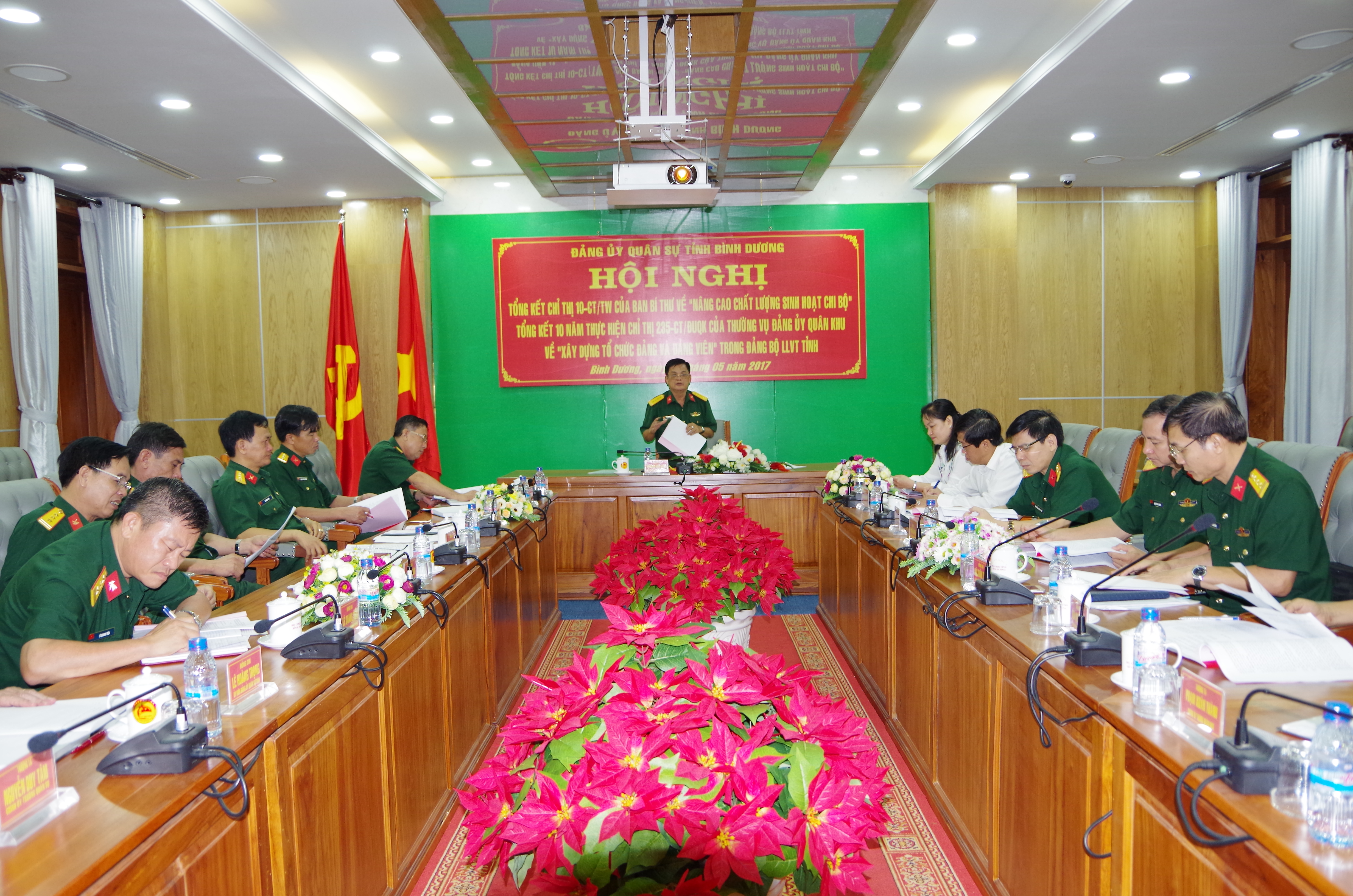 QK7 Online) – Ngày 17 tháng 5 năm 2017, Đảng ủy Quân sự tỉnh Bình Dương tổ chức hội nghị Tổng kết 10 năm thực hiện Chỉ thị 235 của Thường vụ Đảng ủy Quân khu về xây dựng tổ chức Đảng và đảng viên. Đại tá Trương Bình Long, Phó Bí thư Đảng ủy, Chính ủy Bộ CHQS tỉnh chủ trì hội nghị.