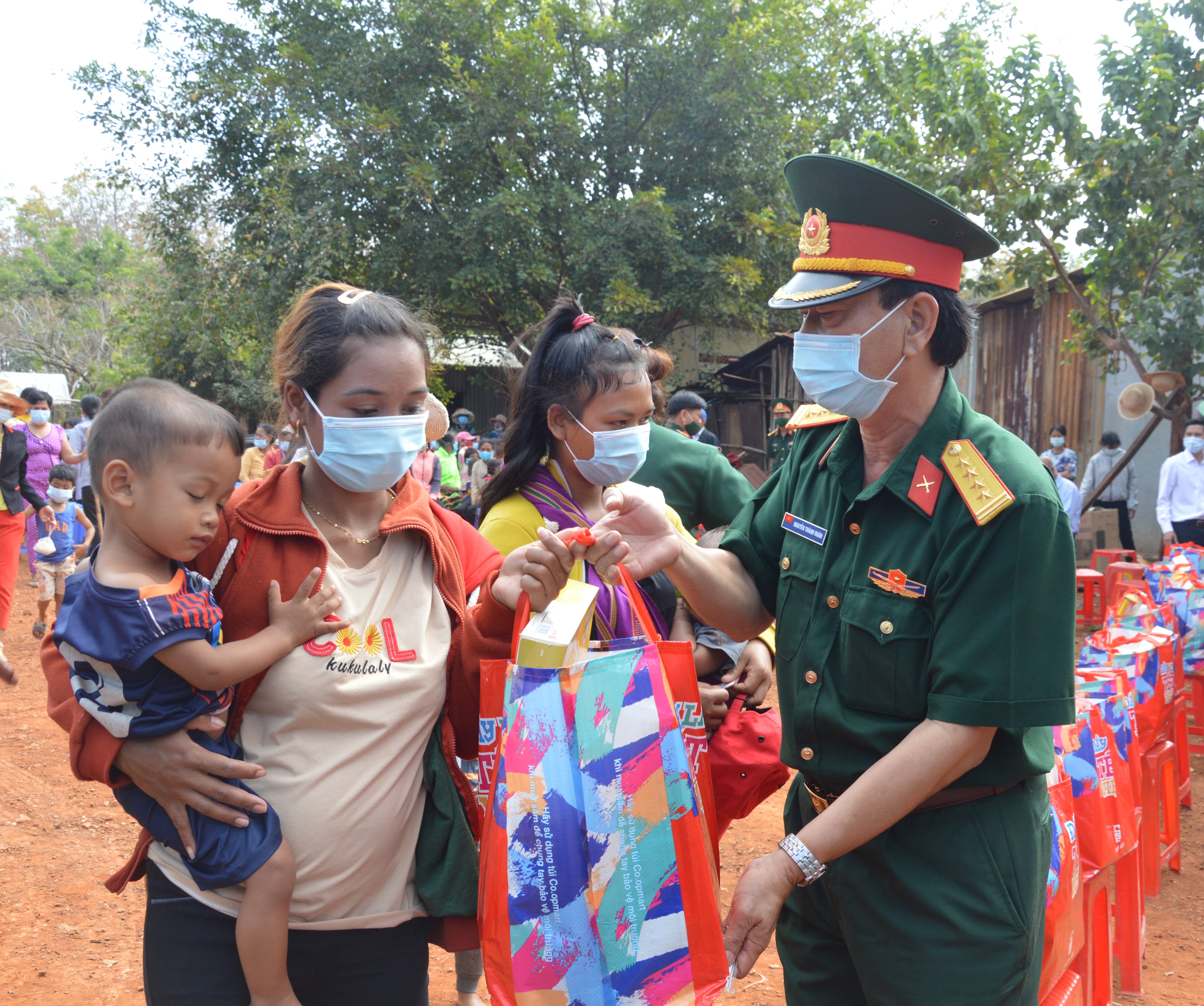 Thủ trưởng Bộ CHQS tỉnh tặng quà người dân tộc thiểu số khó khăn do dịch.