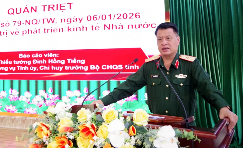 Thiếu tướng Đinh Hồng Tiếng, Chỉ huy trưởng Bộ CHQS tỉnh Lâm Đồng giới thiệu Nghị quyết số 79 của Bộ Chính trị.